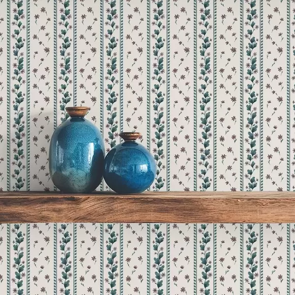 Papel pintado Rayas florales verticales en tonos azul y marrón Nr. a00811