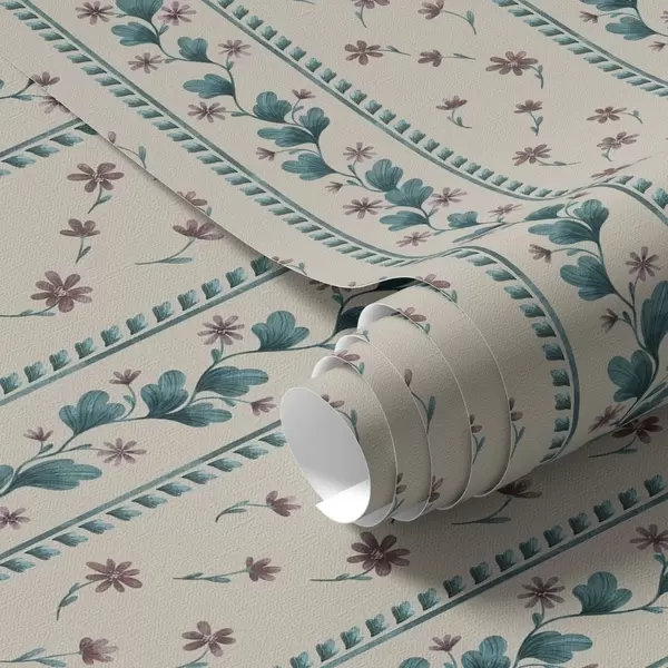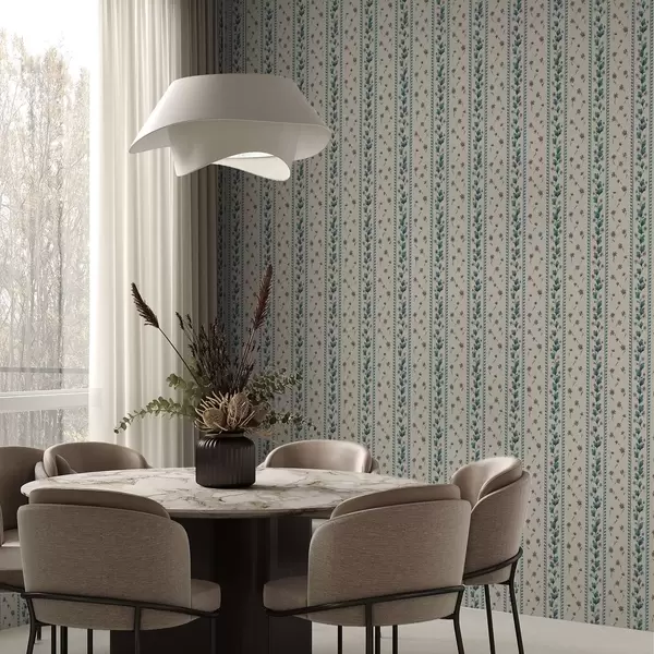 Papel pintado Rayas florales verticales en tonos azul y marrón Nr. a00811v1