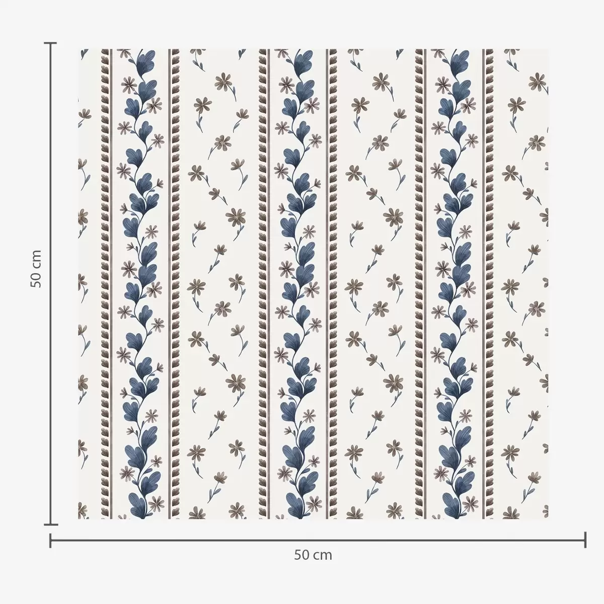 Papel pintado Rayas florales verticales en tonos azul y marrón Nr. a00811v2