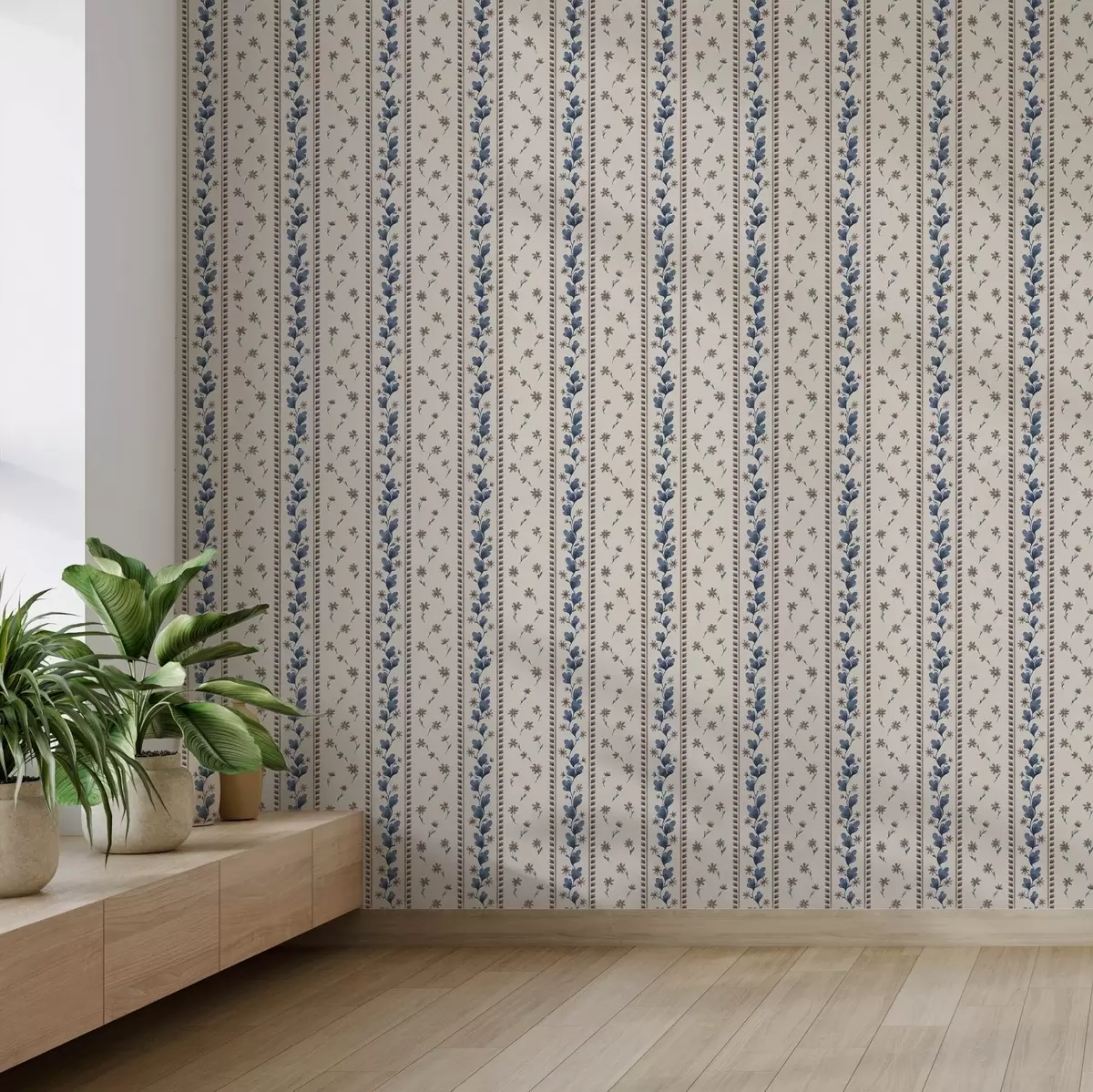 Papel pintado Rayas florales verticales en tonos azul y marrón Nr. a00811v3