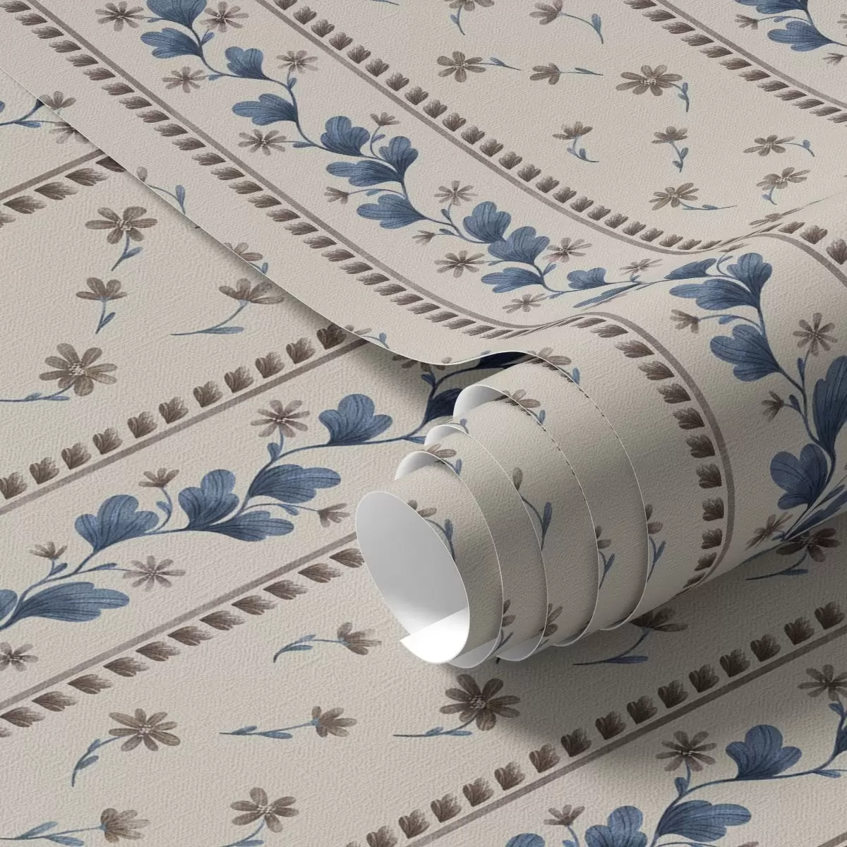 Papel pintado Rayas florales verticales en tonos azul y marrón Nr. a00811v3