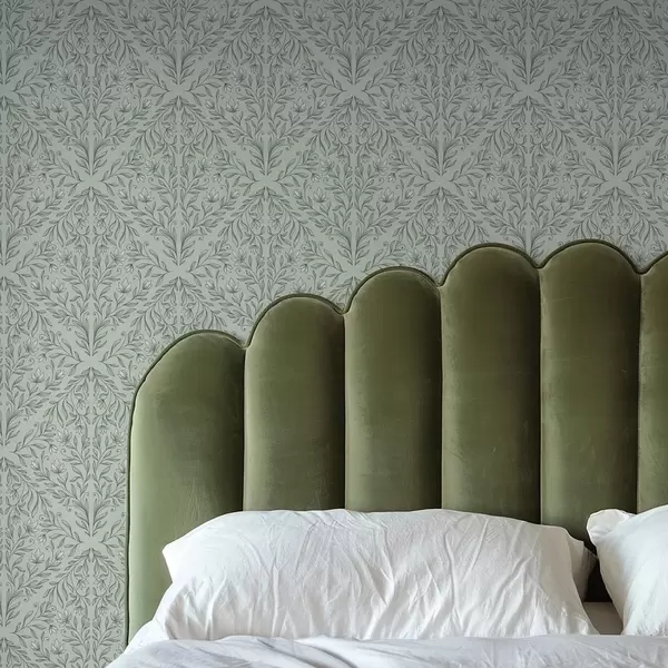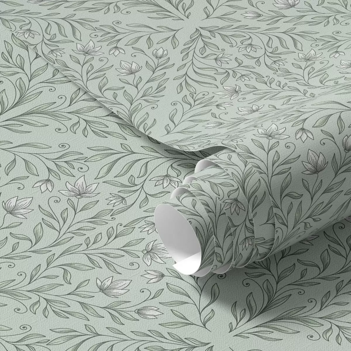 Papel pintado Lacy dispara sobre un fondo verde pastel, con una suave profundidad. Nr. a00815v3