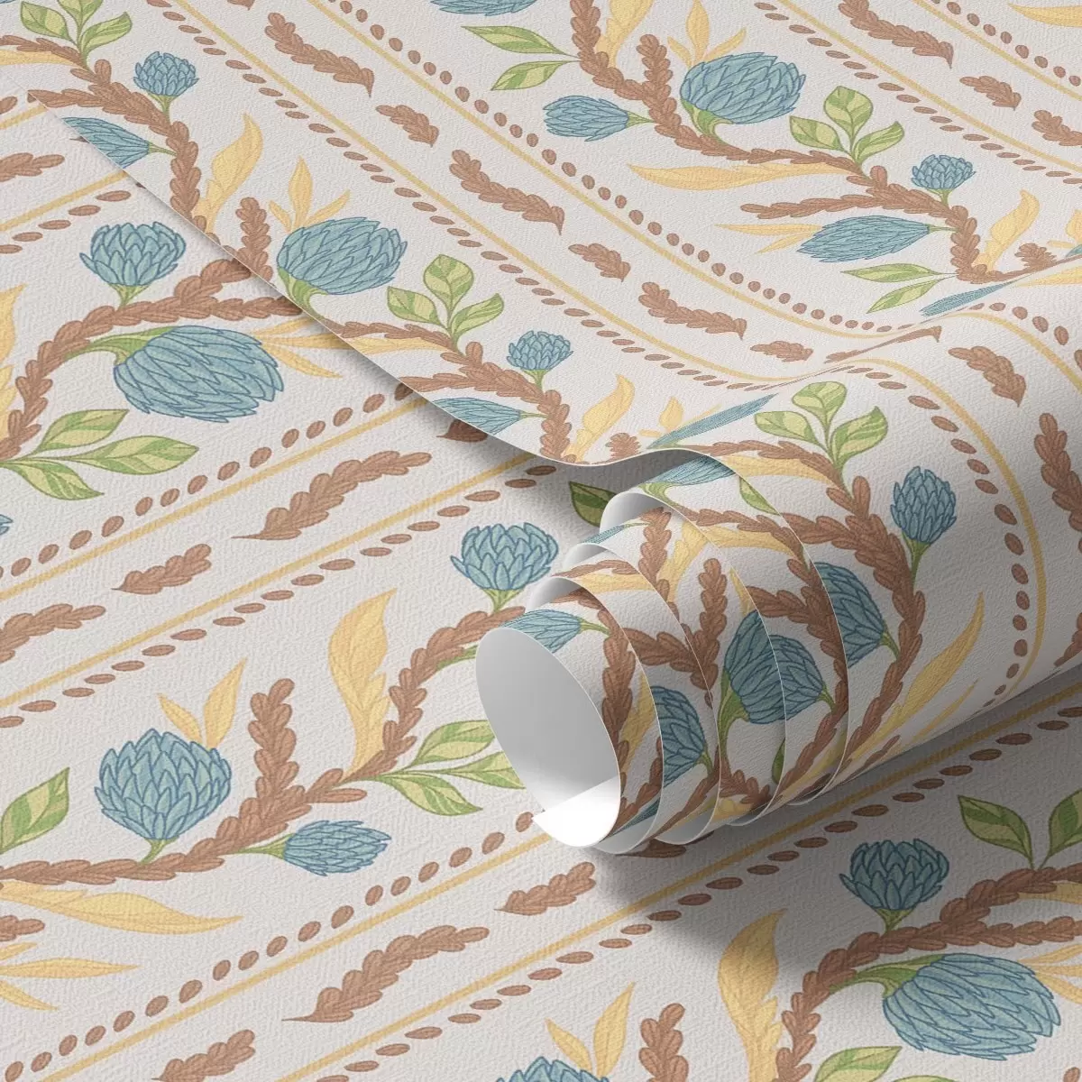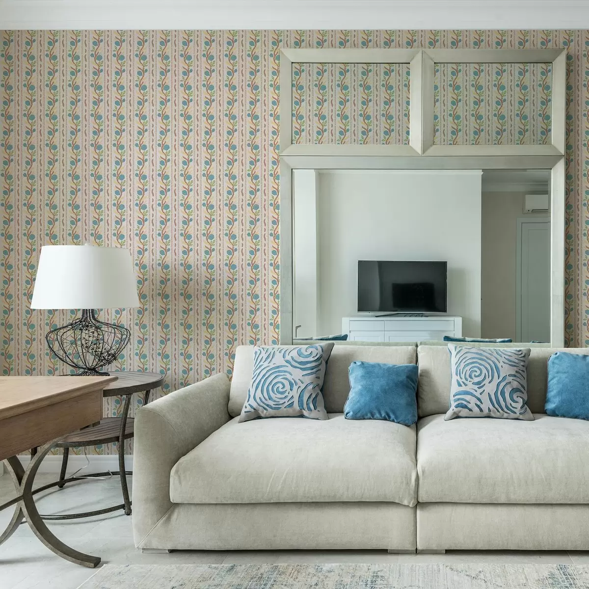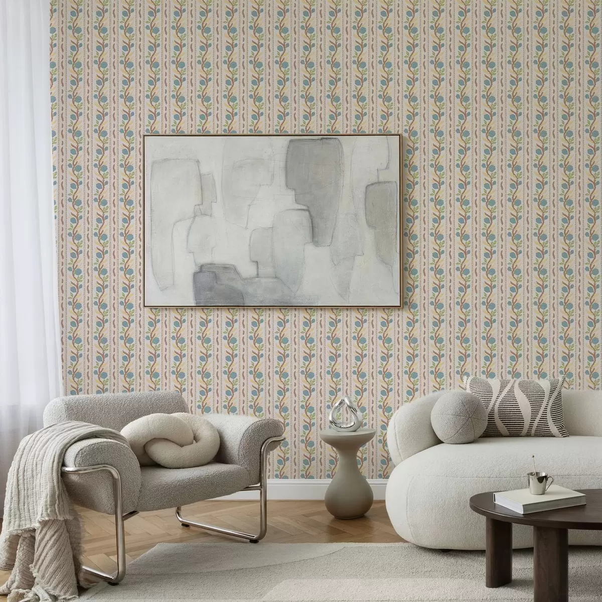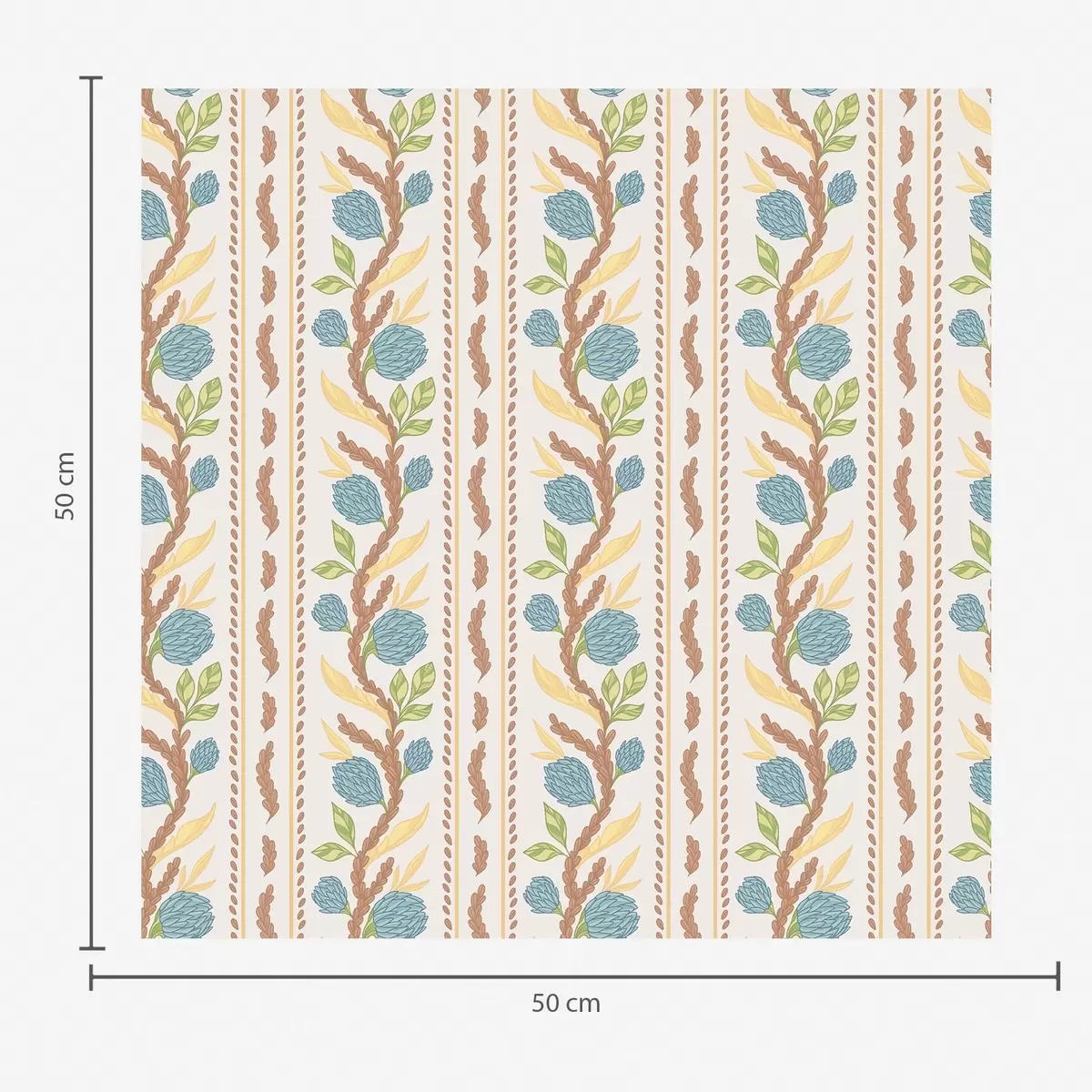 Papel pintado Rayas verticales con flores azules sobre un fondo cálido Nr. a00816v3