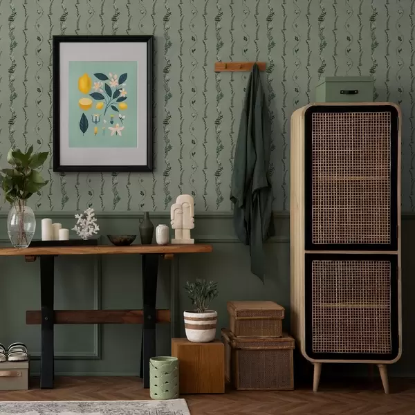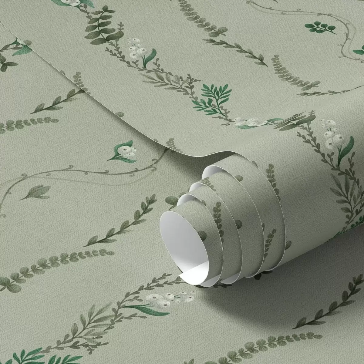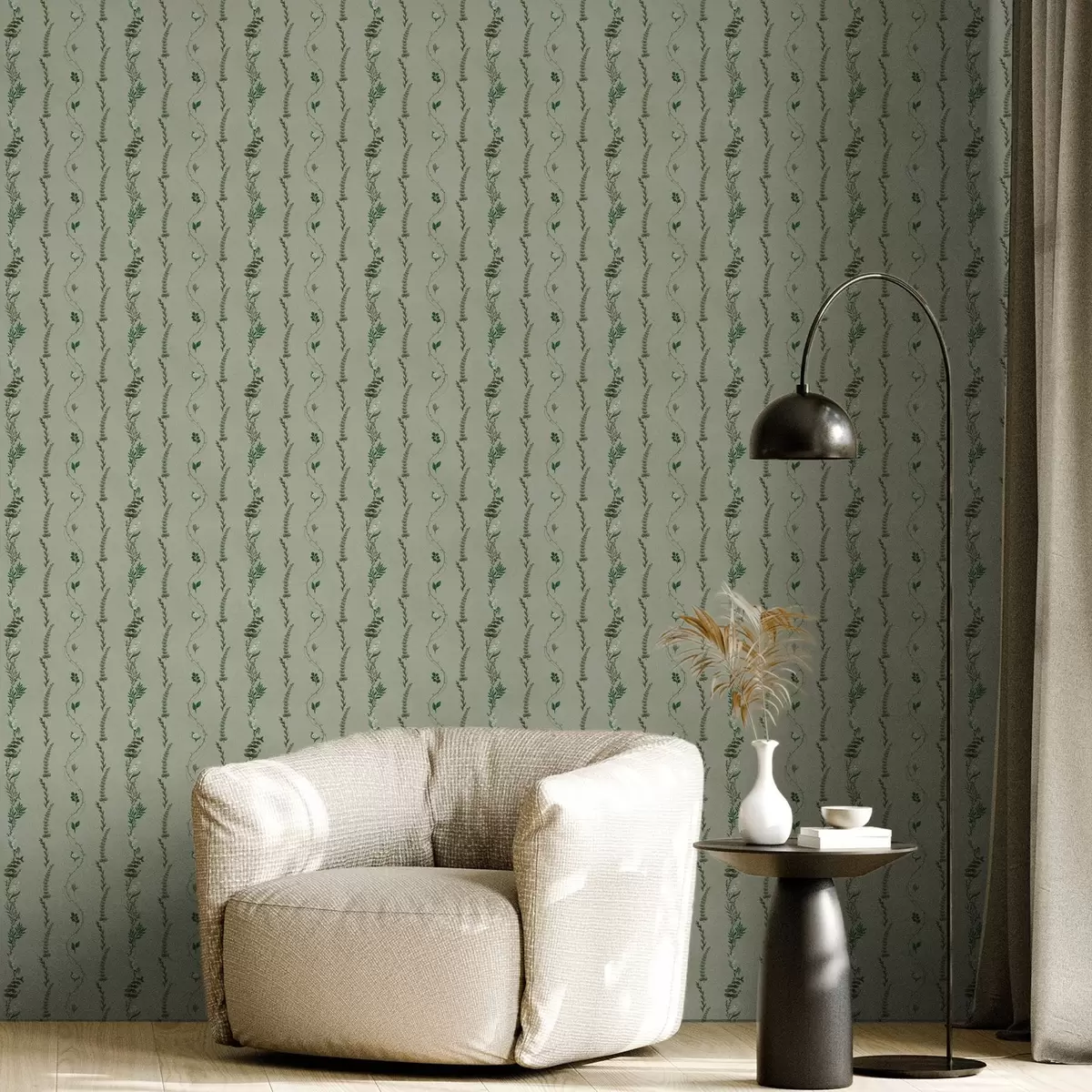 Papel pintado Enredaderas verticales y ramitas en verde apagado Nr. a00817v1