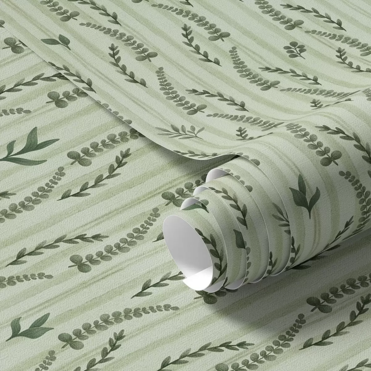 Papel pintado Hierbas verdes densas y brotes de menta con rayas Nr. a00819