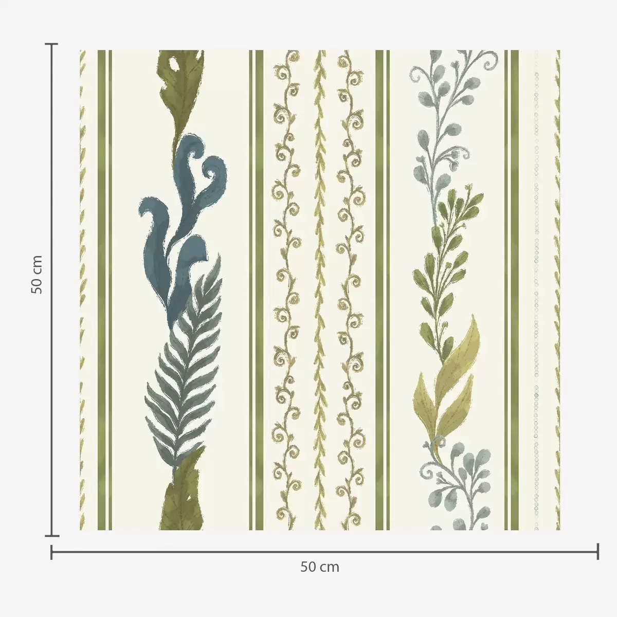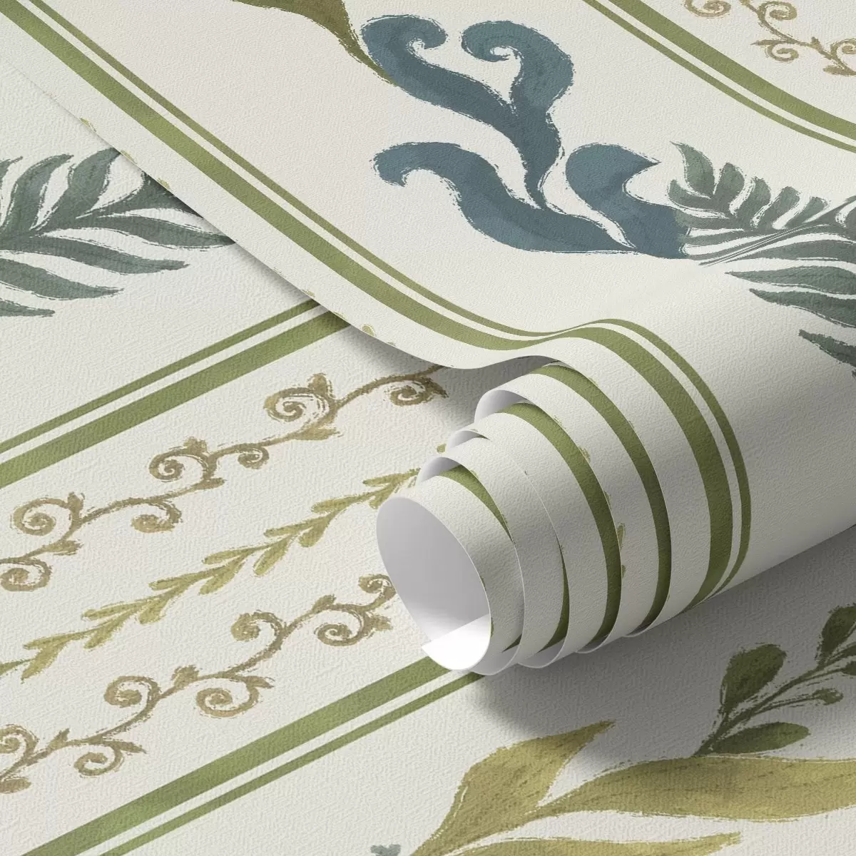 Papel pintado Rayas con adornos en espiral y grandes ramas en tonos verdes Nr. a00823