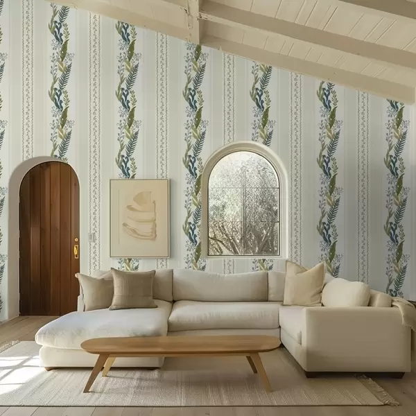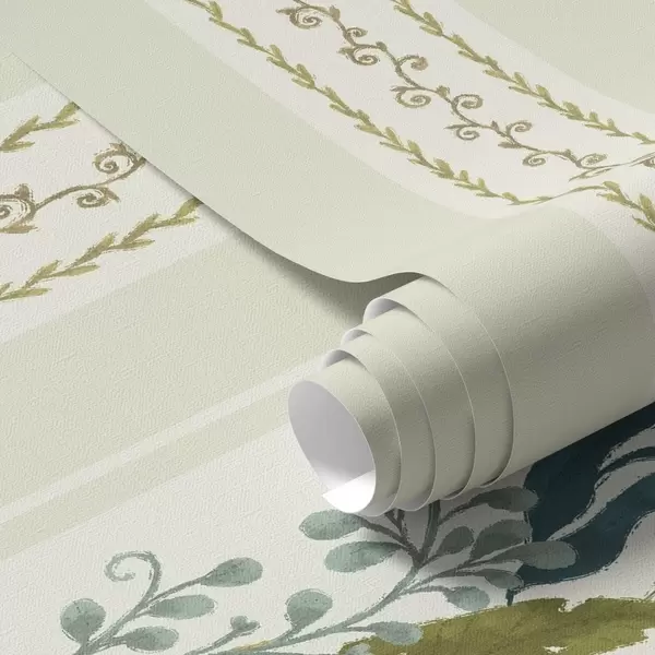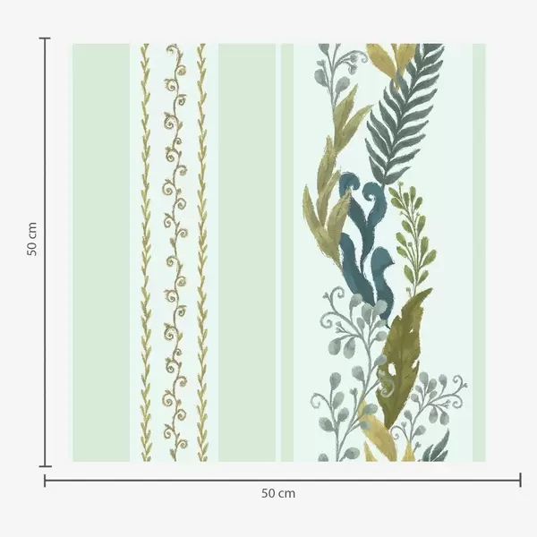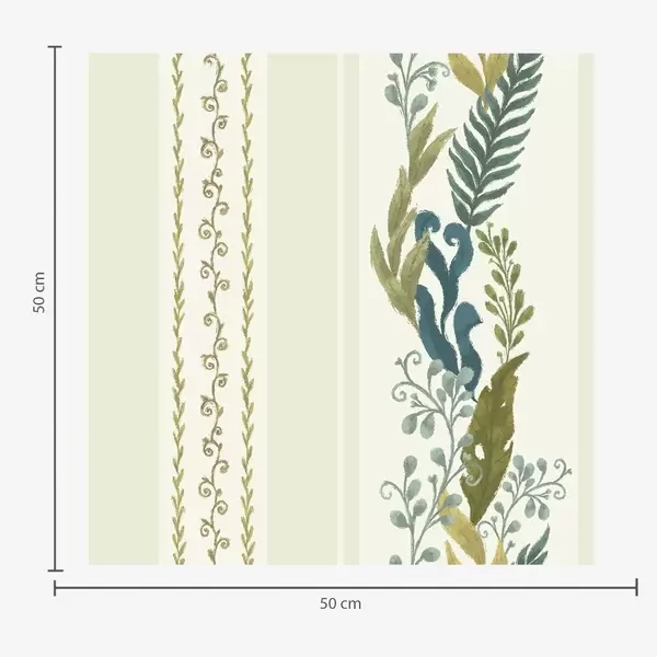 Papel pintado Rayas anchas con ramas pictóricas en tonos azul oliva Nr. a00825