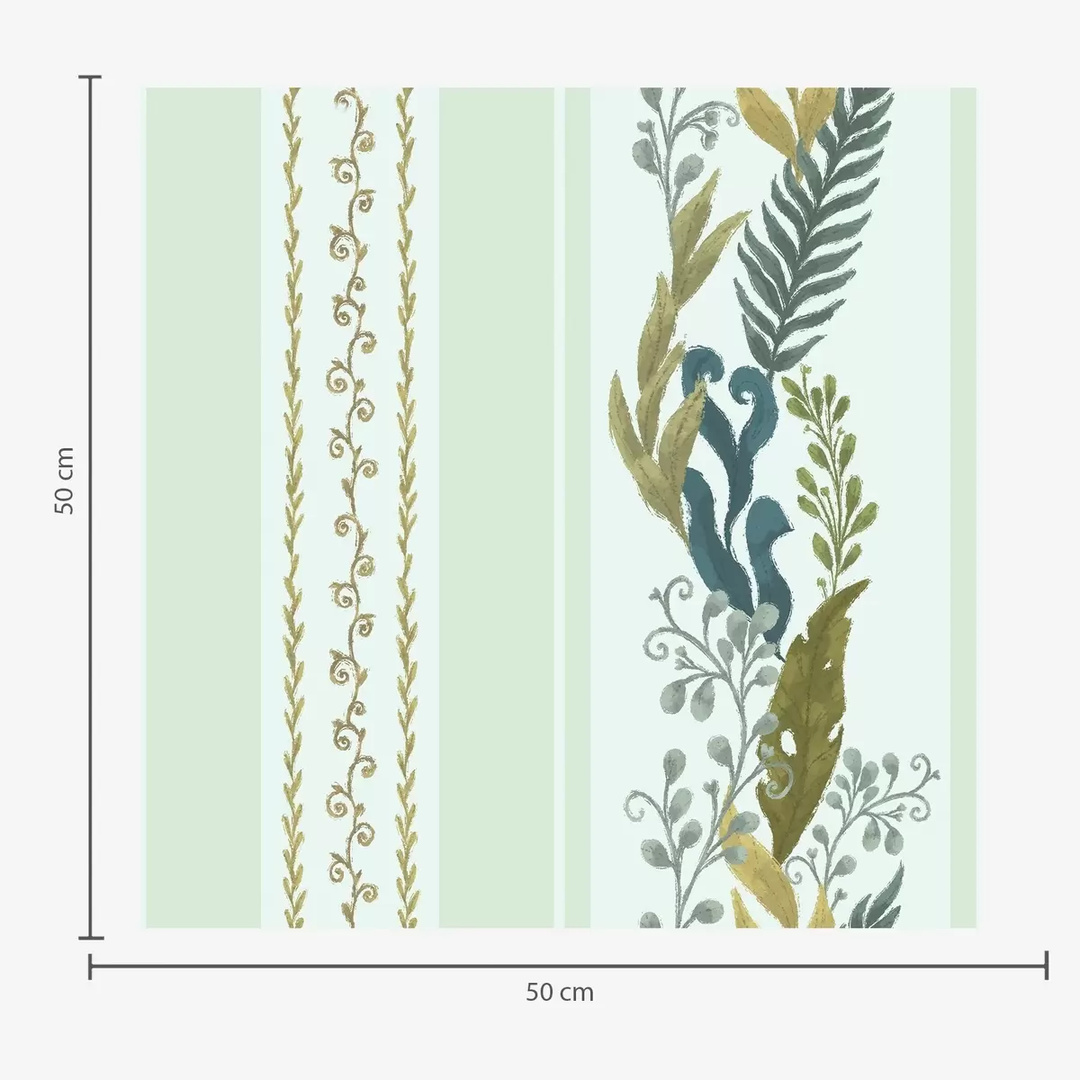 Papel pintado Rayas anchas con ramas pictóricas sobre un suave fondo menta. Nr. a00825v1