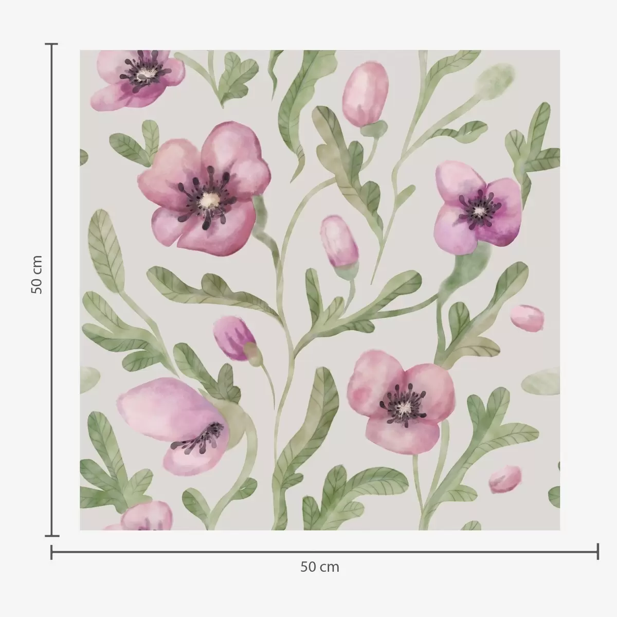 Papel pintado Delicadas amapolas rosas con hojas en técnica acuarela Nr. a00830