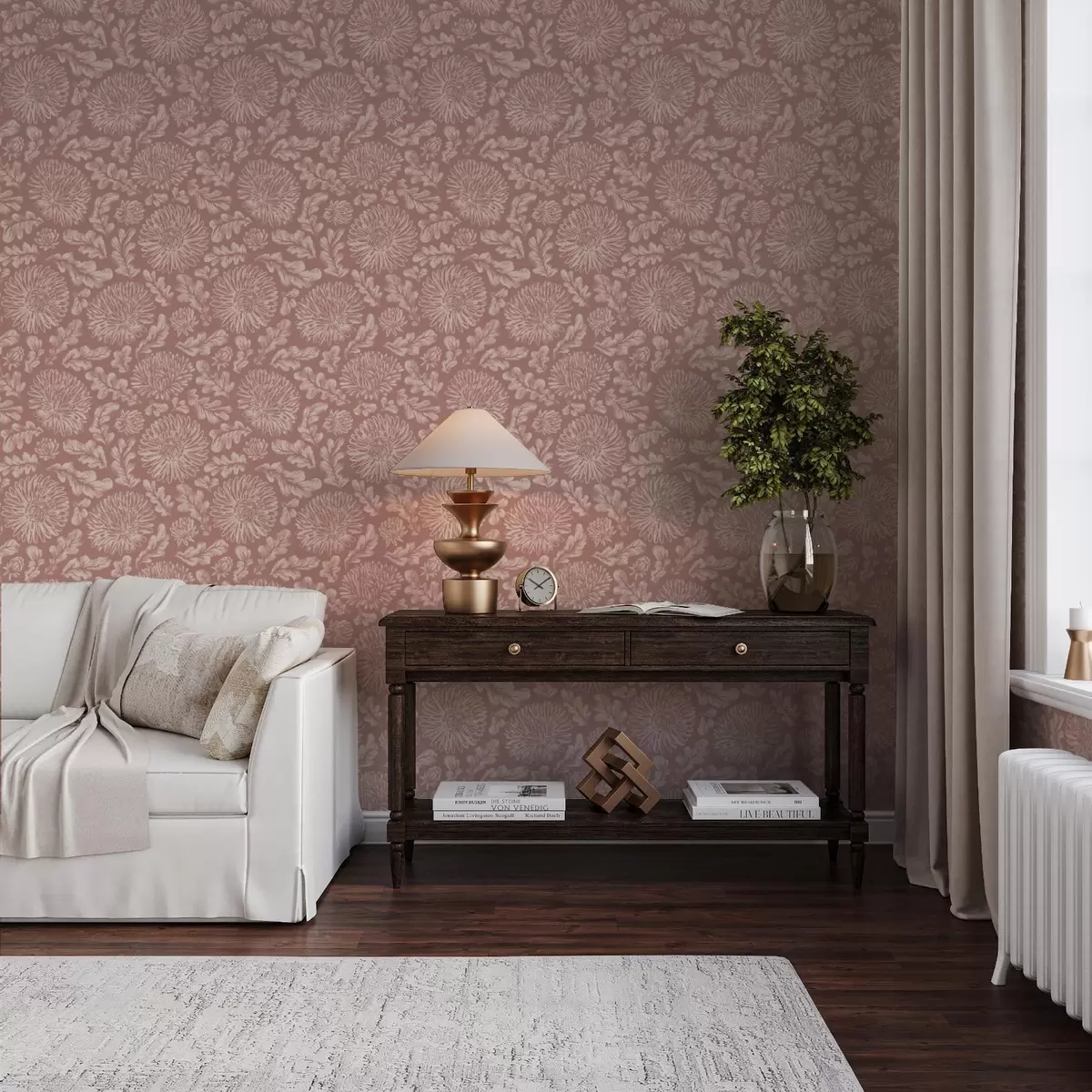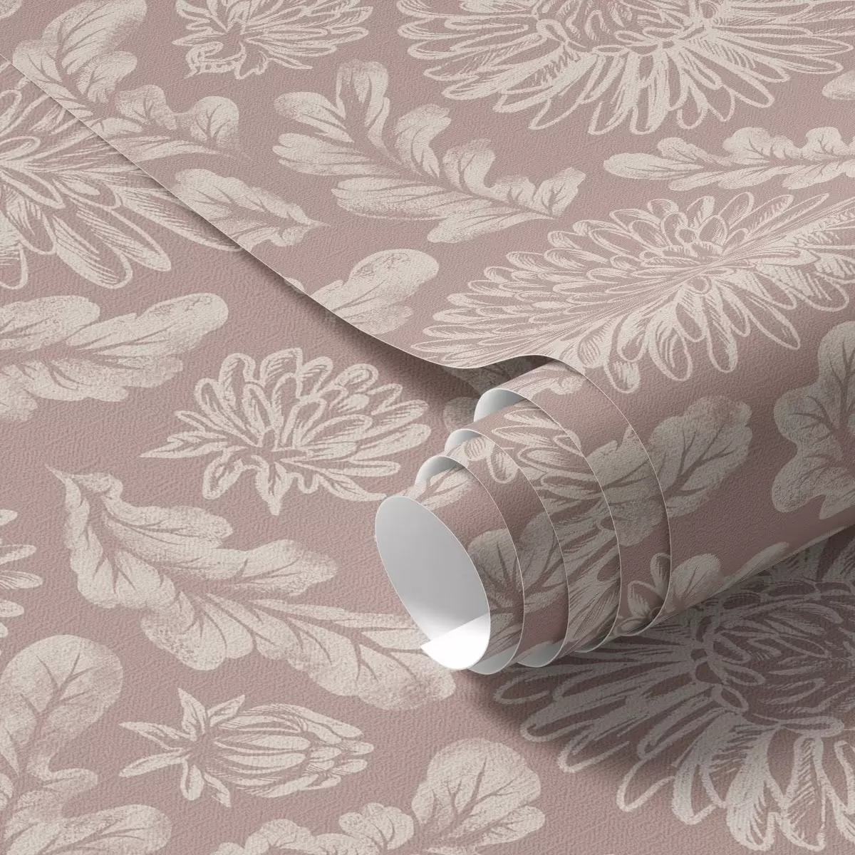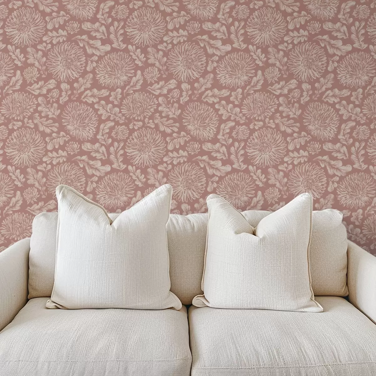 Papel pintado Crisantemos color crema sobre fondo rosa empolvado Nr. a00840v2