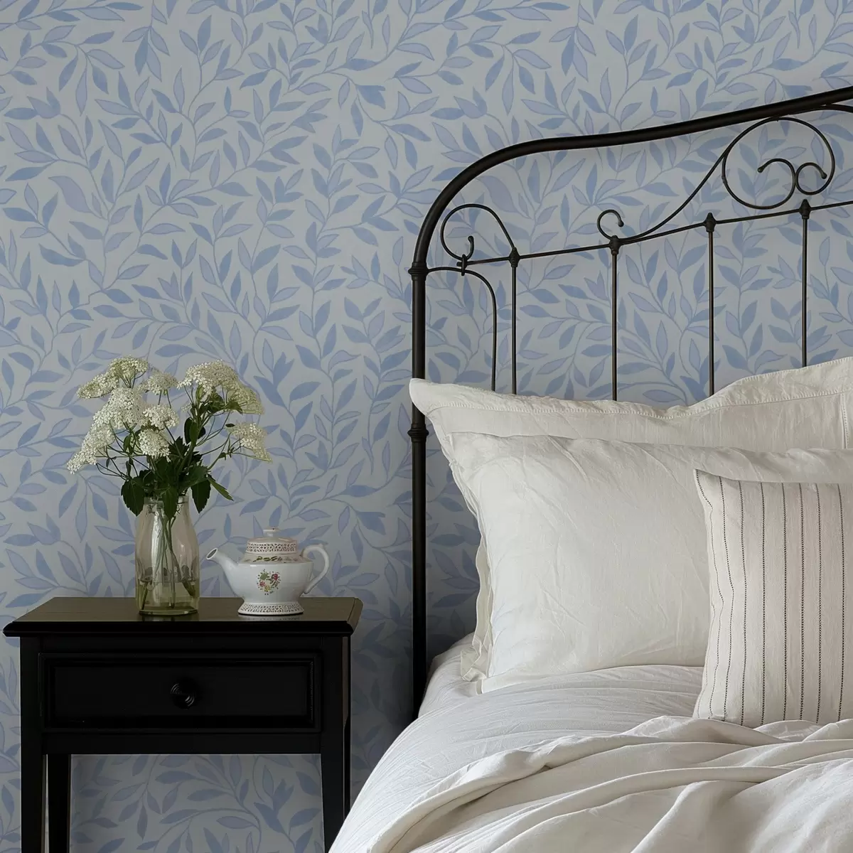 Papel pintado Ramitas azules con hojas en azul claro Nr. a00842