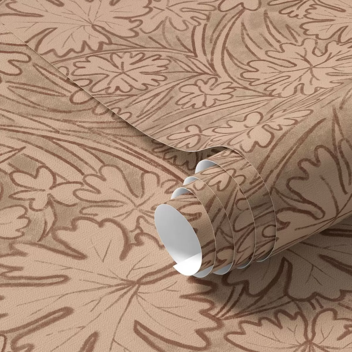 Papel pintado Hojas y hierbas del campo en una paleta de colores terracota y beige. Nr. a00847