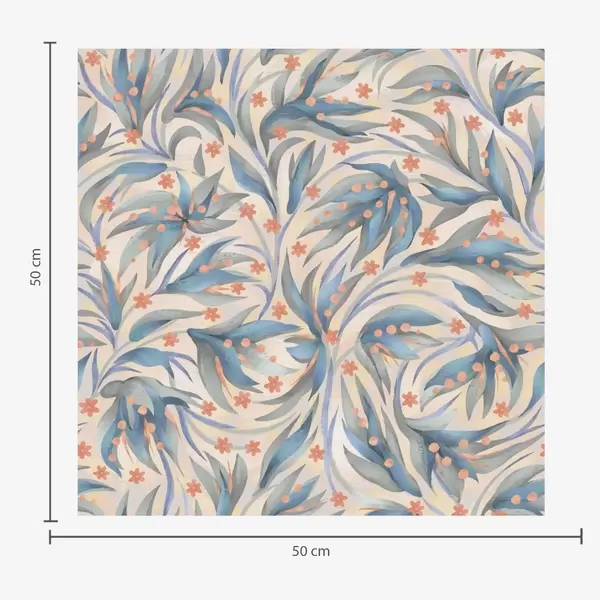 Papel pintado Follaje azul abstracto con flores coralinas Nr. a00852