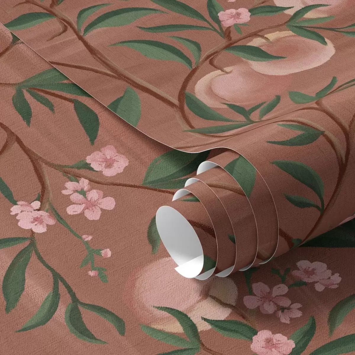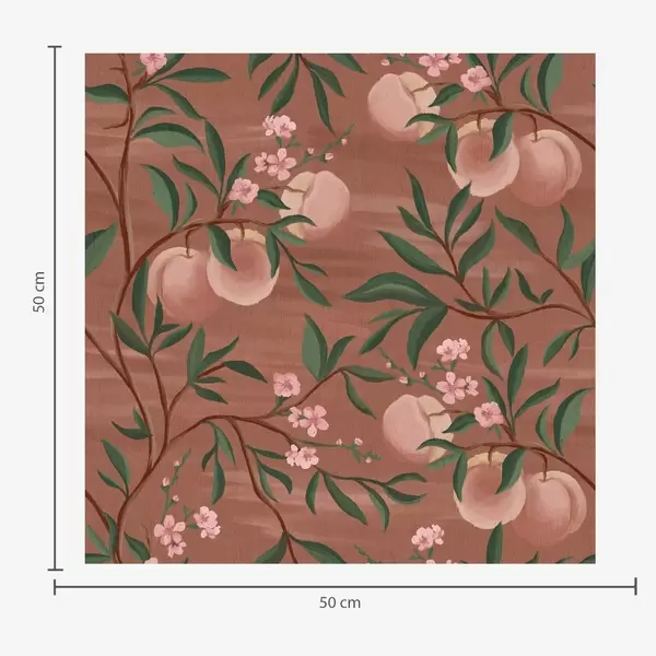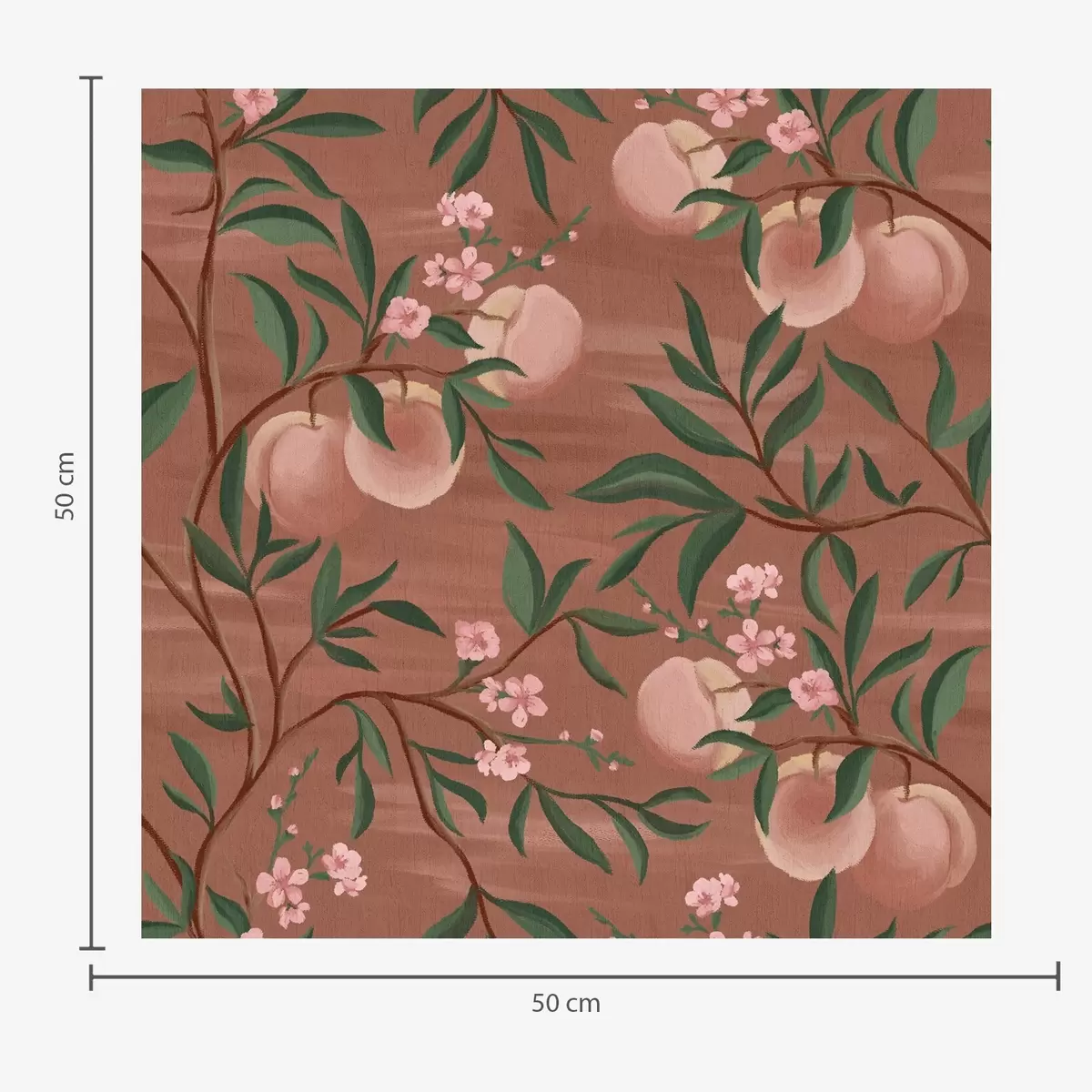 Papel pintado Melocotones en ramas con flores rosas, suelo de terracota Nr. a00856