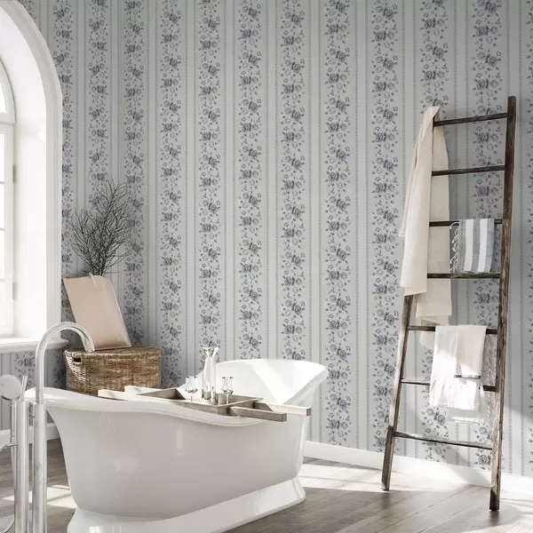 Papel pintado Rosas azules en bandas verticales sobre fondo claro. Nr. a00860