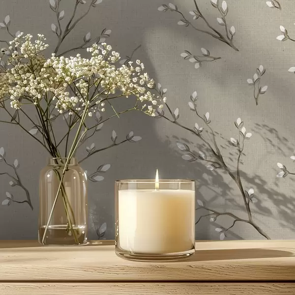 Papel pintado Ramitas con brotes blancos sobre fondo gris topo lino Nr. a00861