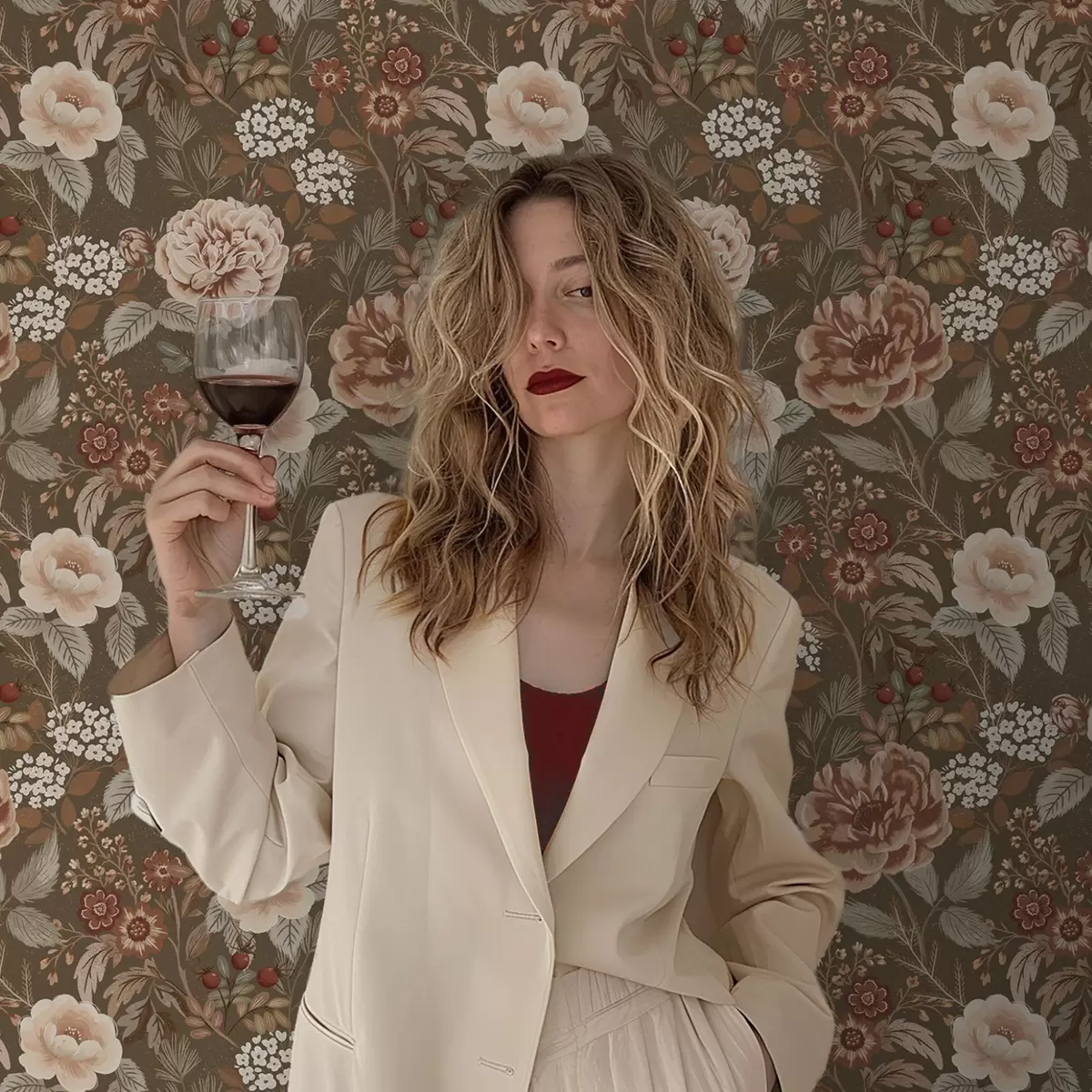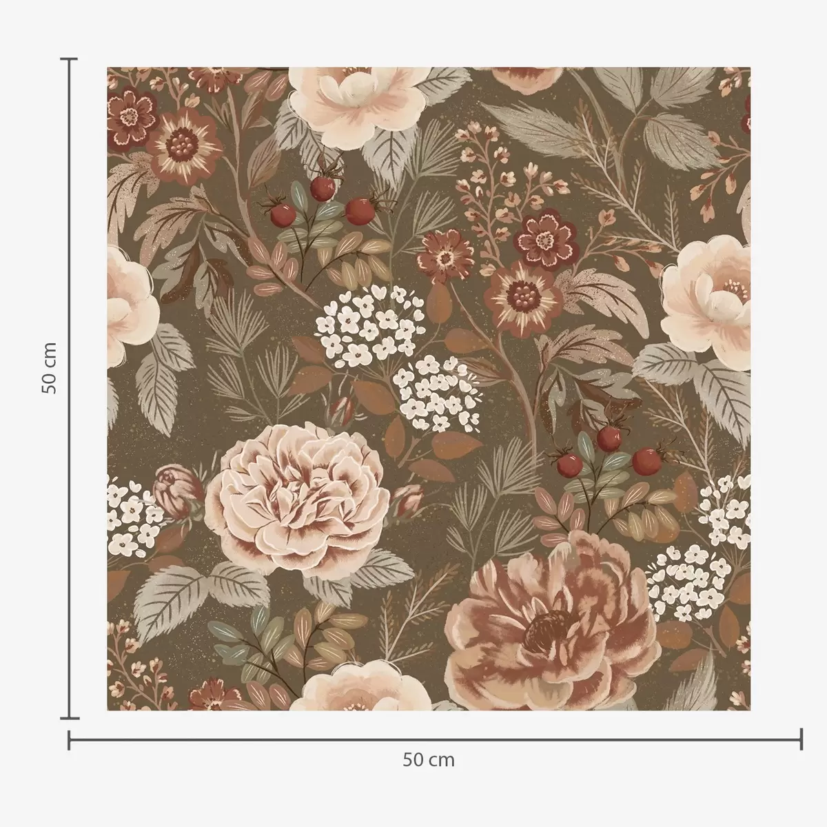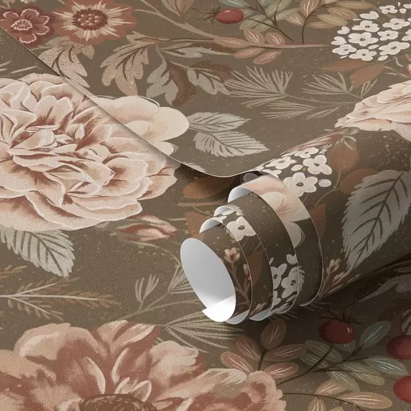 Papel pintado Rosas cálidas y bayas sobre fondo marrón Nr. a00868