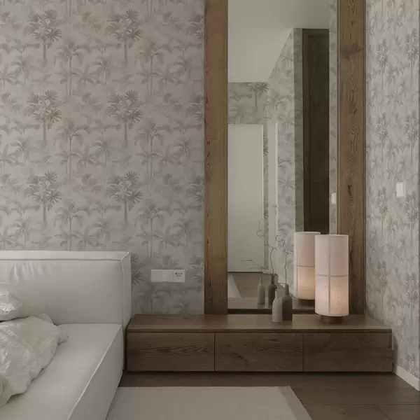 Papel pintado Palmeral brumoso en cálidos tonos beige Nr. a00881
