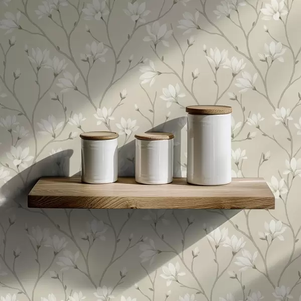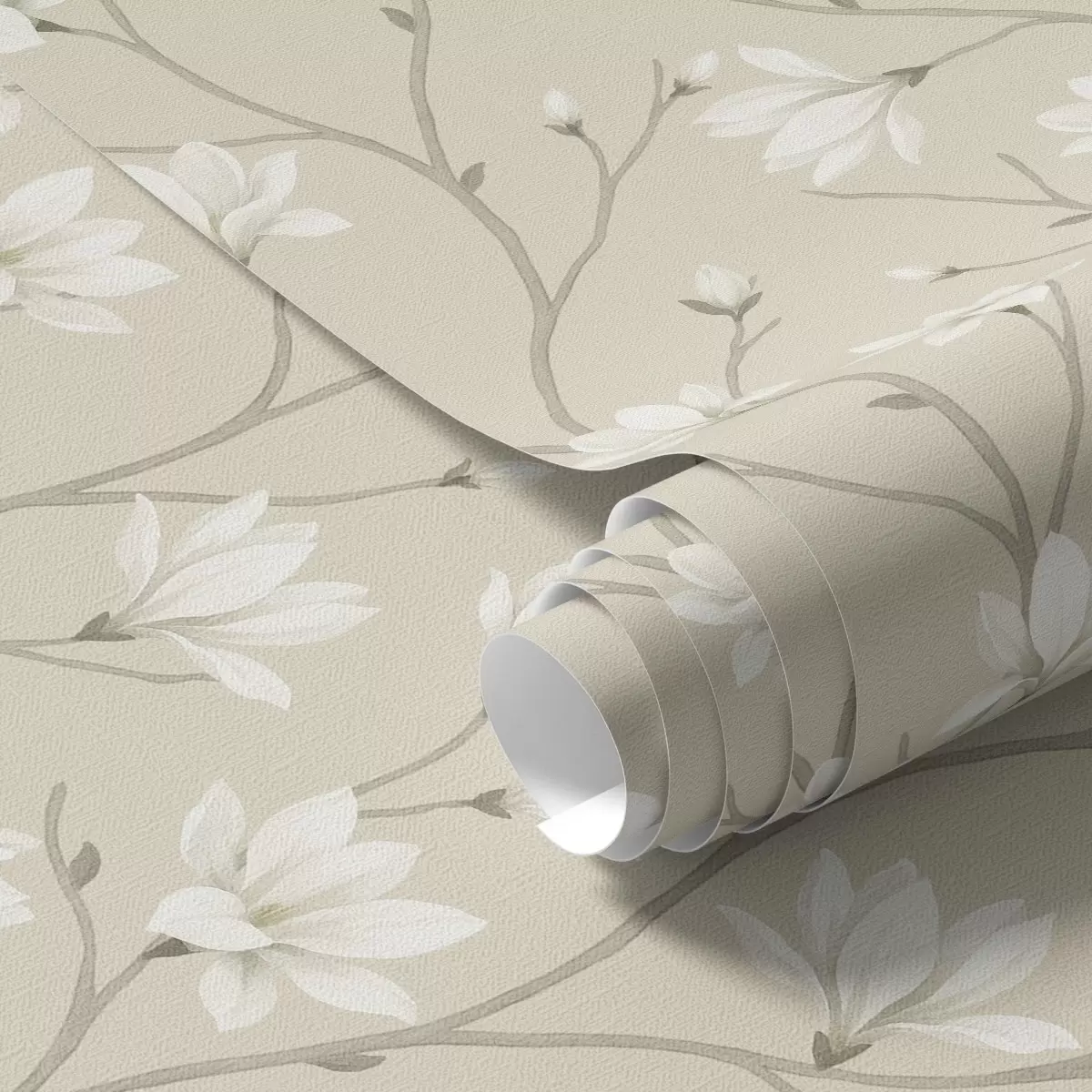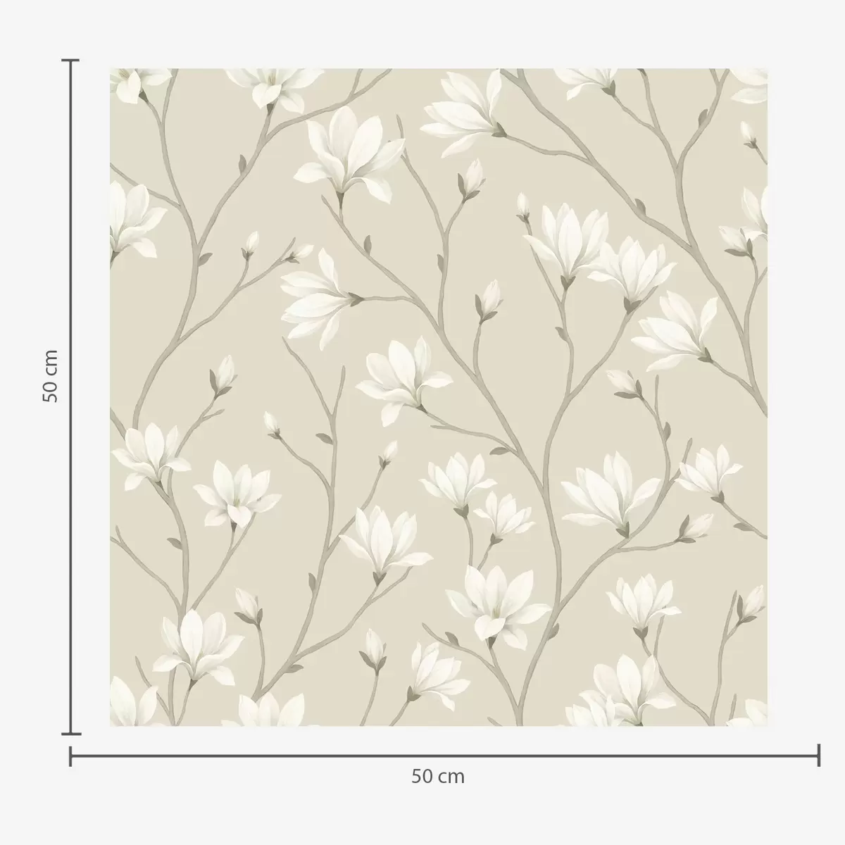 Papel pintado Magnolias claras en esbeltas ramas beige Nr. a00890
