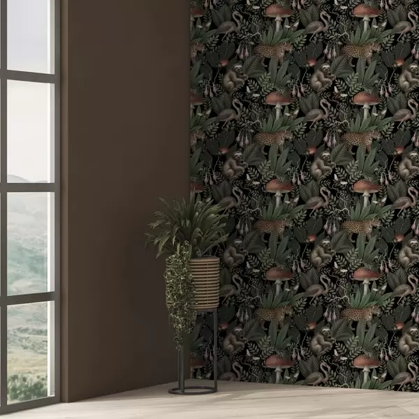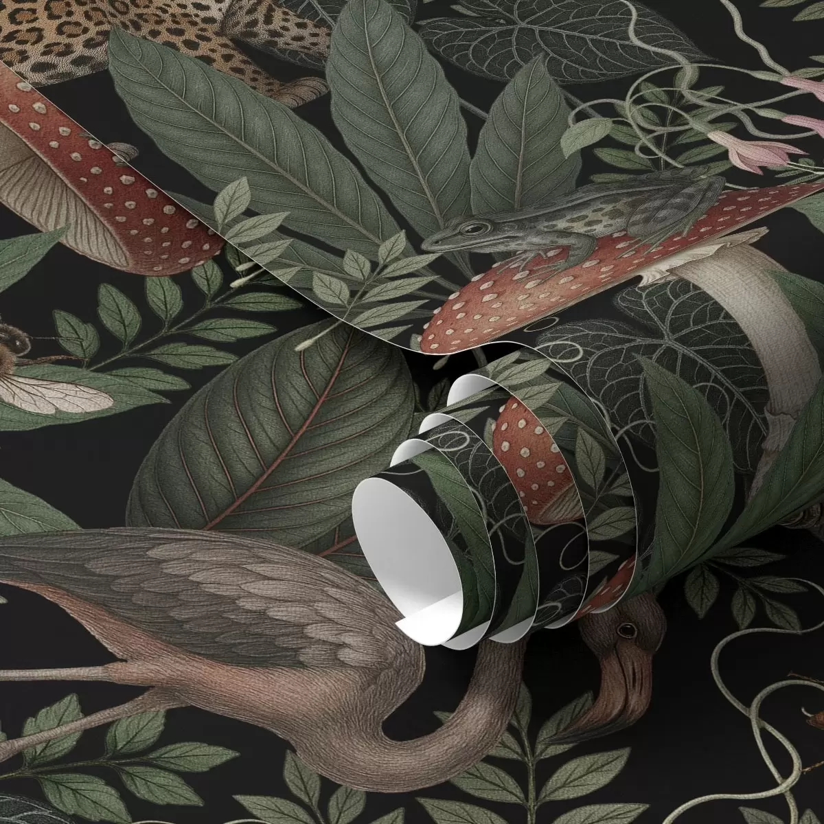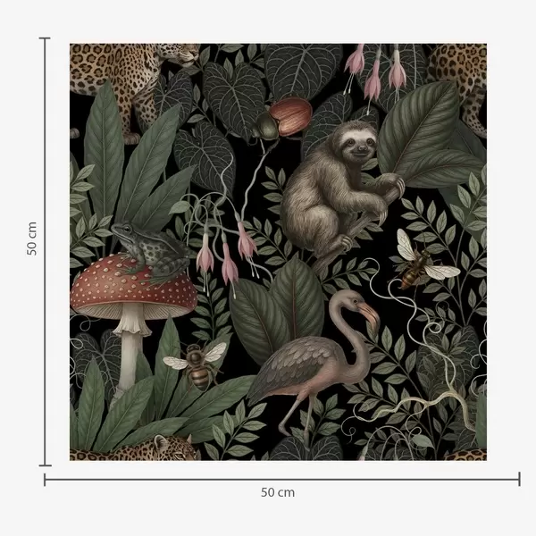 Papel pintado Habitantes nocturnos de la selva en una exuberante vegetación llena de detalles. Nr. a00896