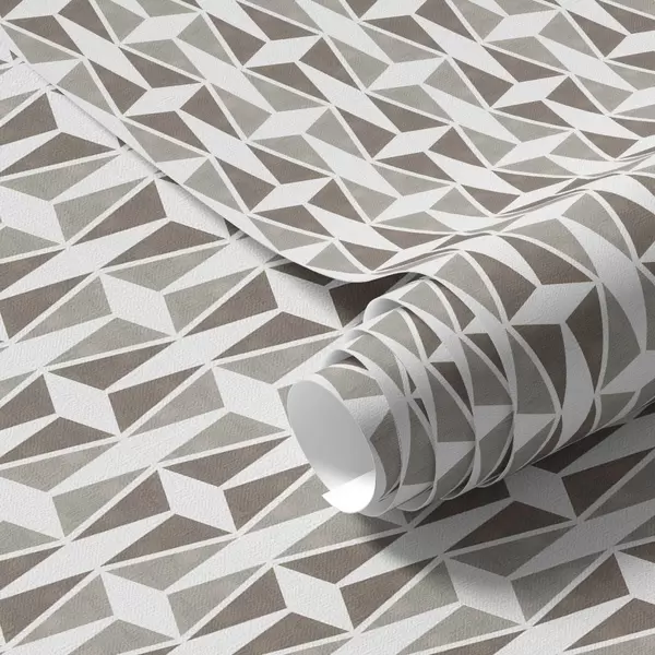 Papel pintado Teselado de rombos en tonos gris topo y blanco, estilo de mediados de siglo. Nr. a00905