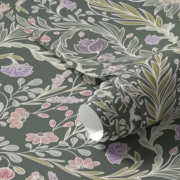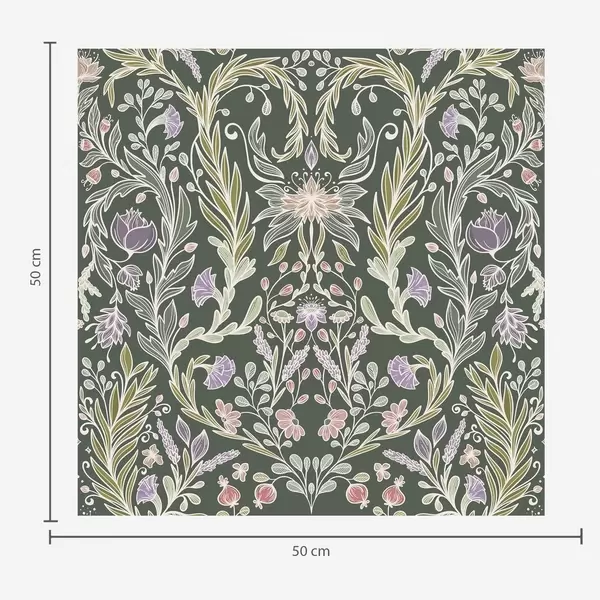 Papel pintado Adorno floral simétrico sobre fondo verde oscuro. Nr. a00928
