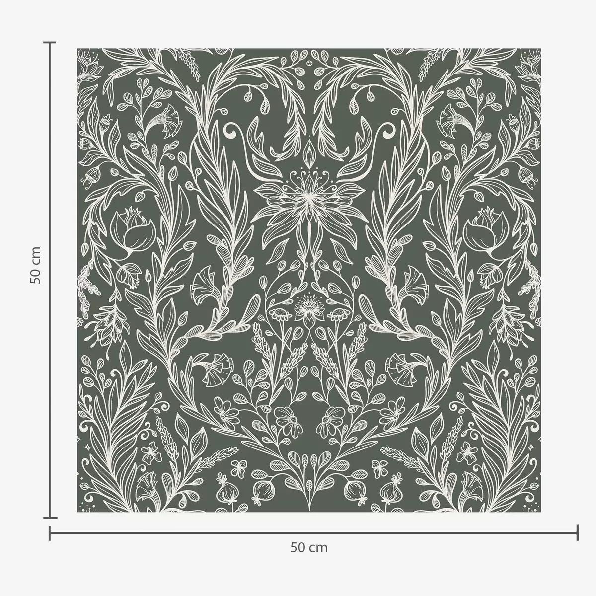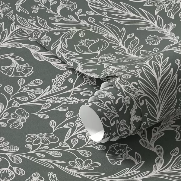 Papel pintado Diseño floral lineal sobre fondo verde oscuro. Nr. a00929