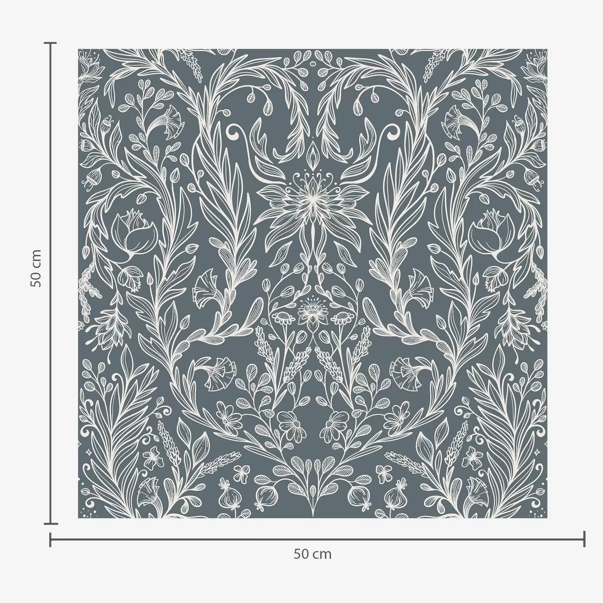 Papel pintado Adorno floral lineal sobre fondo gris azulado. Nr. a00929v1