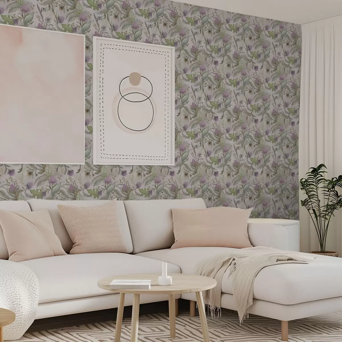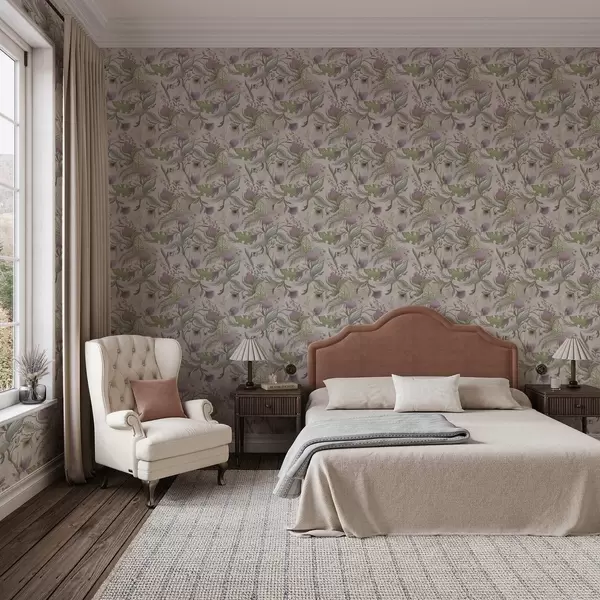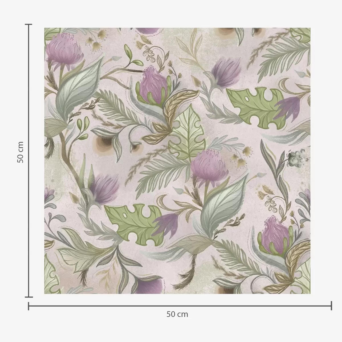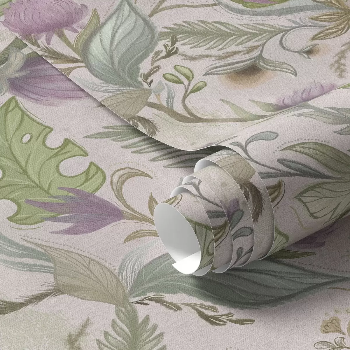 Papel pintado Flores silvestres lilas y hojas sobre un fondo difuminado. Nr. a00930v3