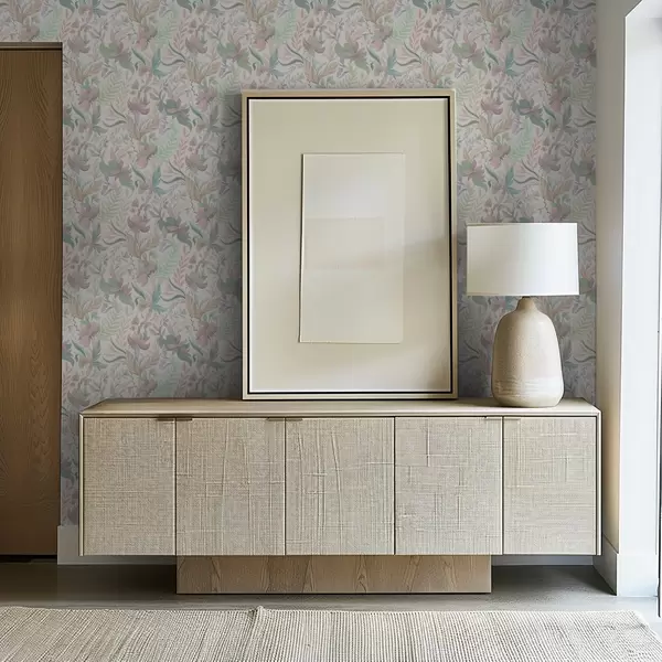 Papel pintado Delicadas flores y hojas en tonos pastel sobre un fondo claro. Nr. a00931