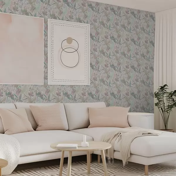 Papel pintado Delicadas flores y hojas en tonos pastel sobre un fondo claro. Nr. a00931