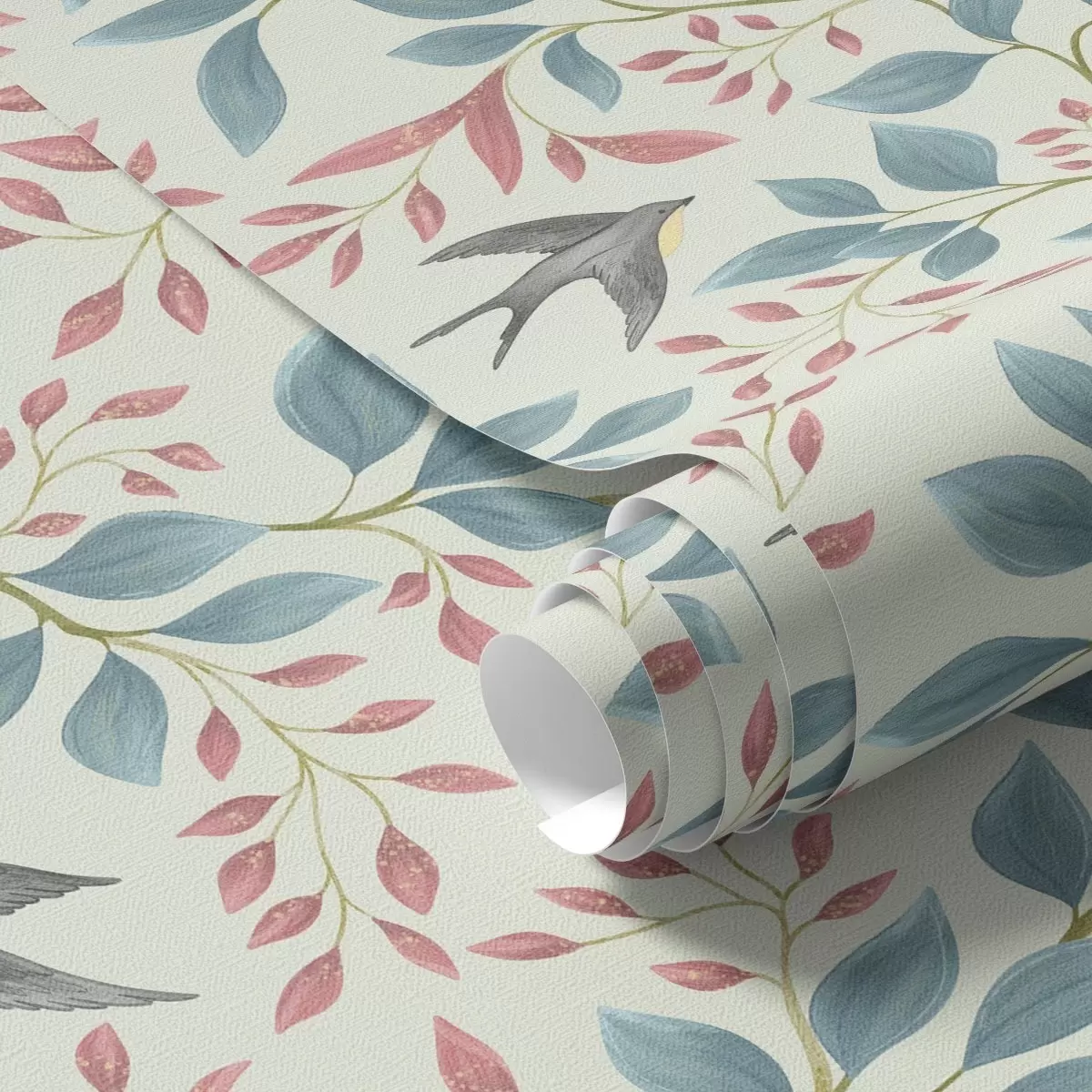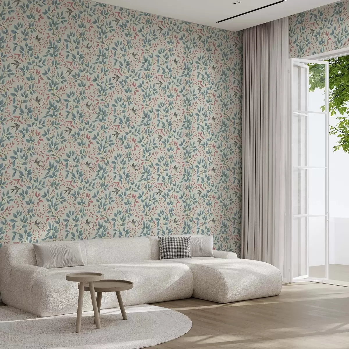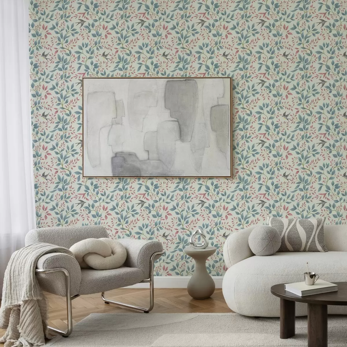 Papel pintado Ramas aireadas y pájaros sobre un fondo menta claro. Nr. a00933v1