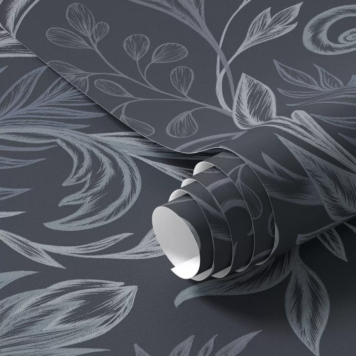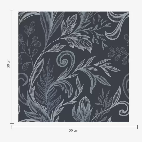 Papel pintado Hojas rizadas de color índigo oscuro con sombreado dibujado a mano. Nr. a00935
