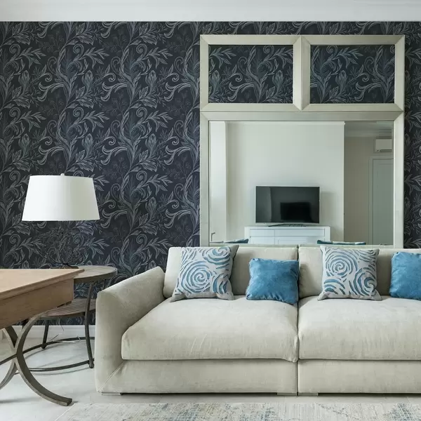 Papel pintado Hojas rizadas de color índigo oscuro con sombreado dibujado a mano Nr. a00935