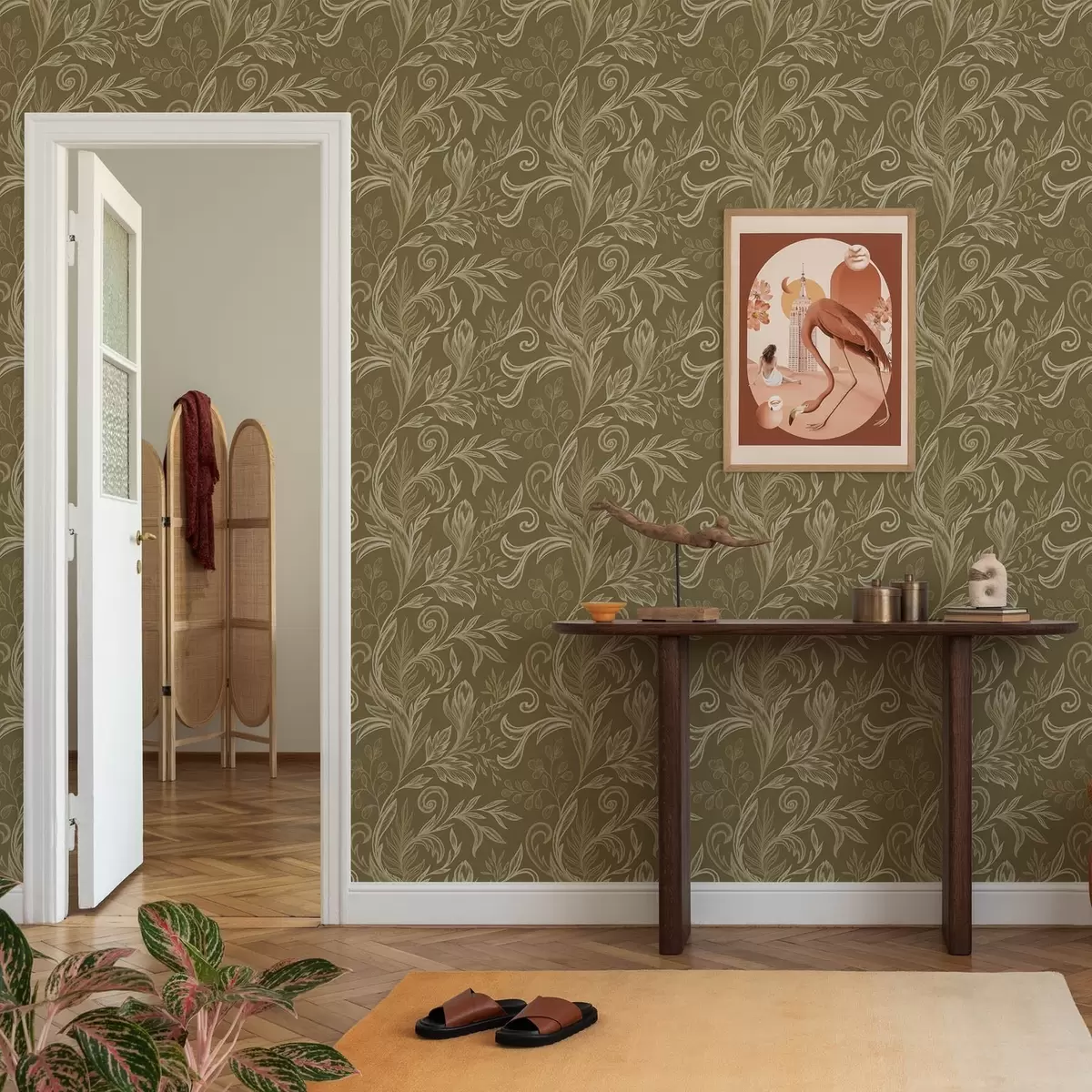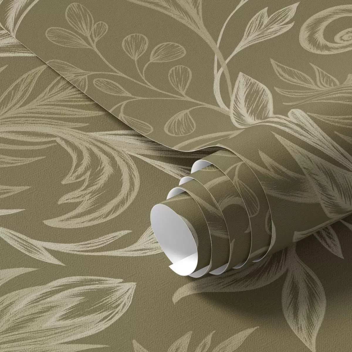 Papel pintado Hojas rizadas de color caqui cálido con ligeros toques crema. Nr. a00935v4