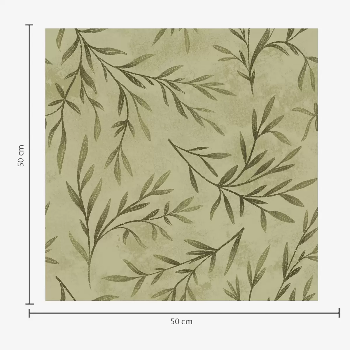 Papel pintado Ramitas de olivo sobre un fondo texturizado de color amarillo verdoso apagado. Nr. a00936