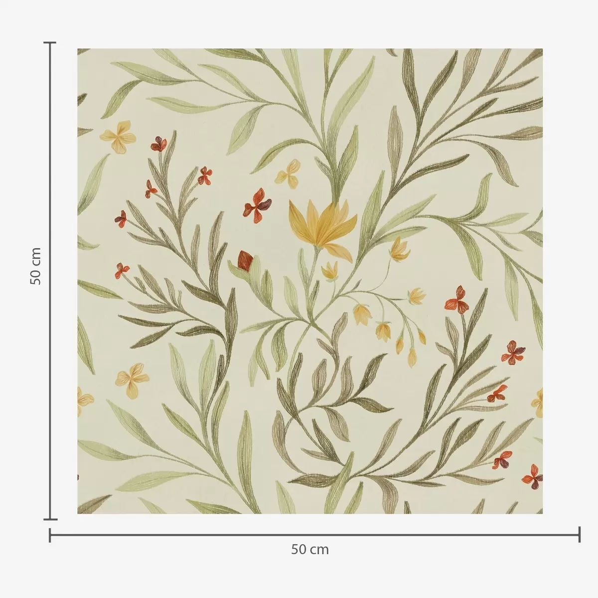 Papel pintado Flores amarillas y rojas sobre un fondo verde claro. Nr. a00937