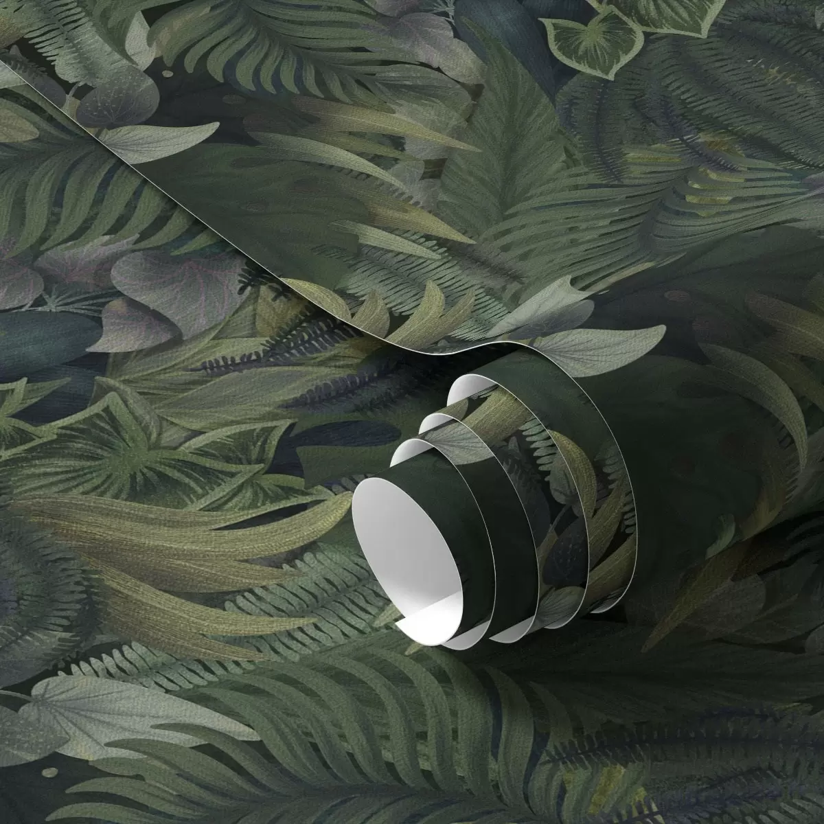 Papel pintado Denso follaje tropical en matorrales de color verde intenso. Nr. a00943