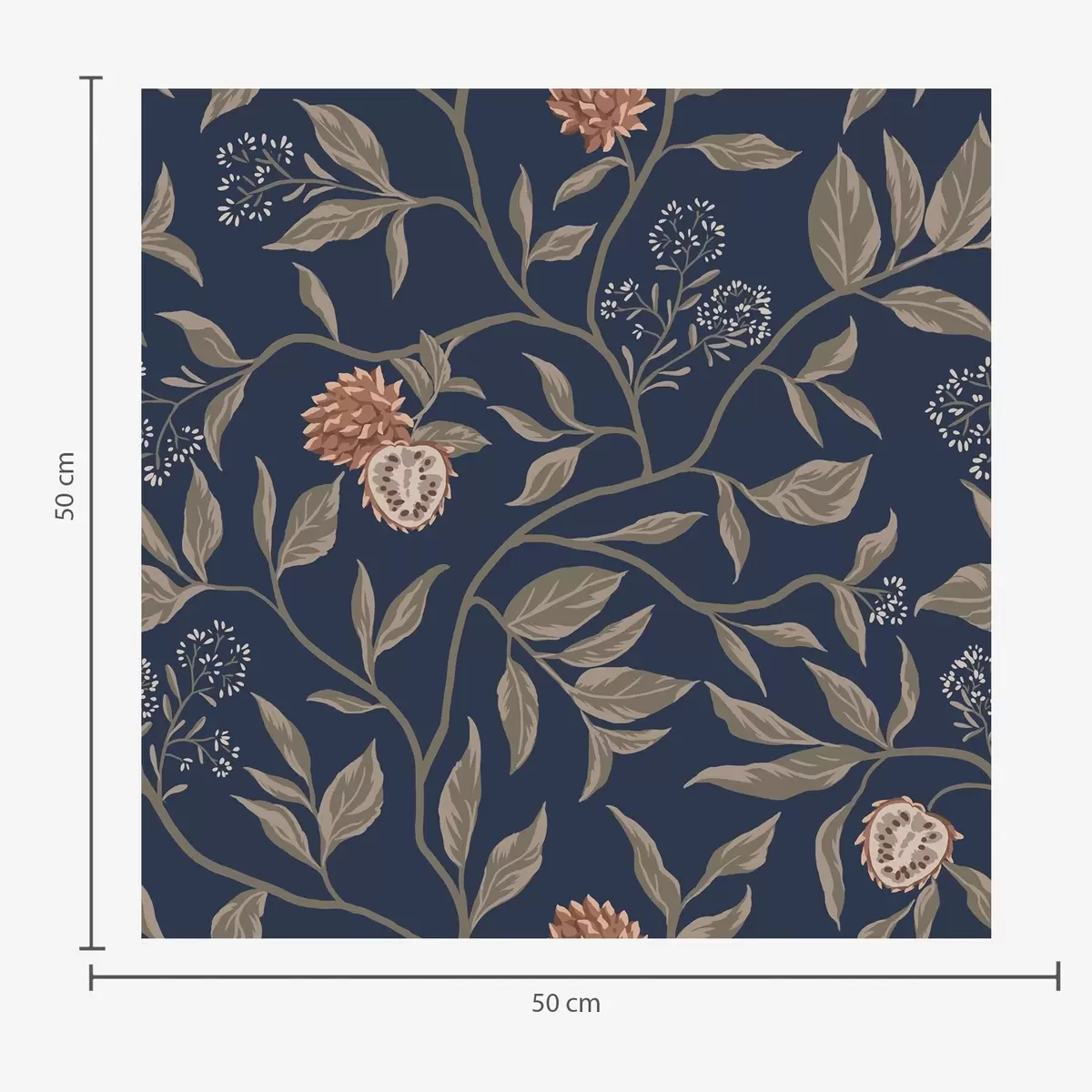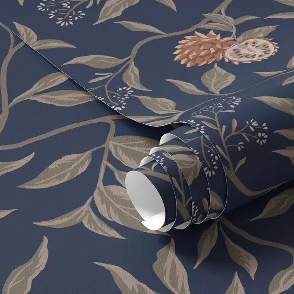 Papel pintado Jardín azul con ramas, frutos y pequeñas flores. Nr. a00959