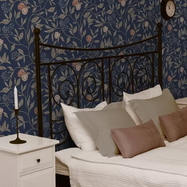 Papel pintado Jardín azul con ramas, frutos y pequeñas flores Nr. a00959