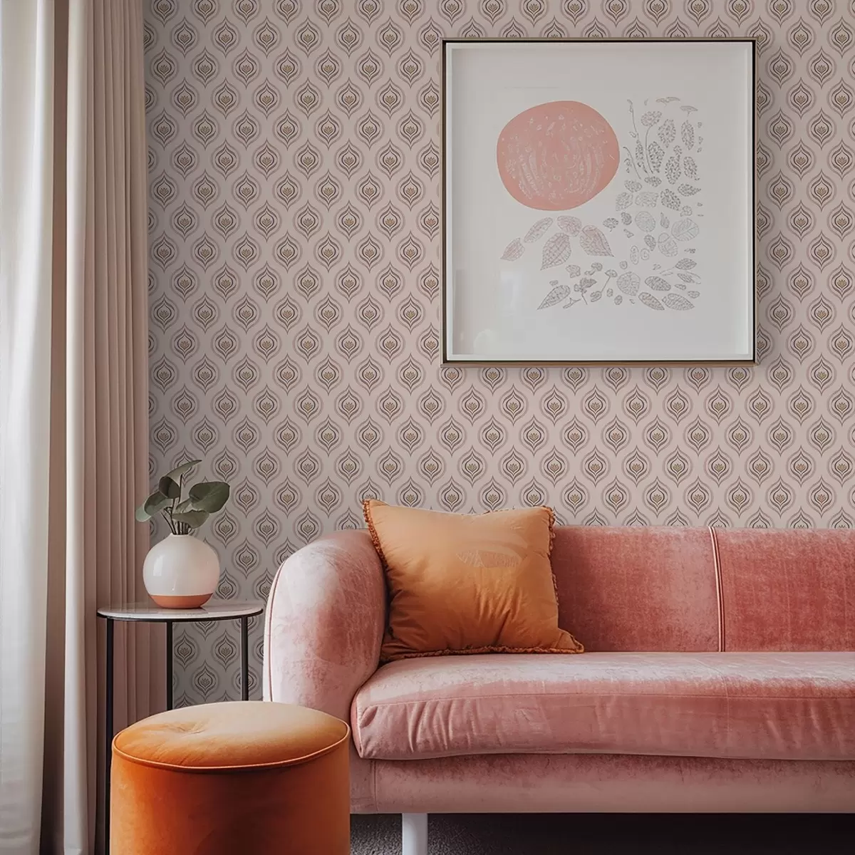 Papel pintado Motivo rítmico con una flor sobre un fondo empolvado. Nr. a00977