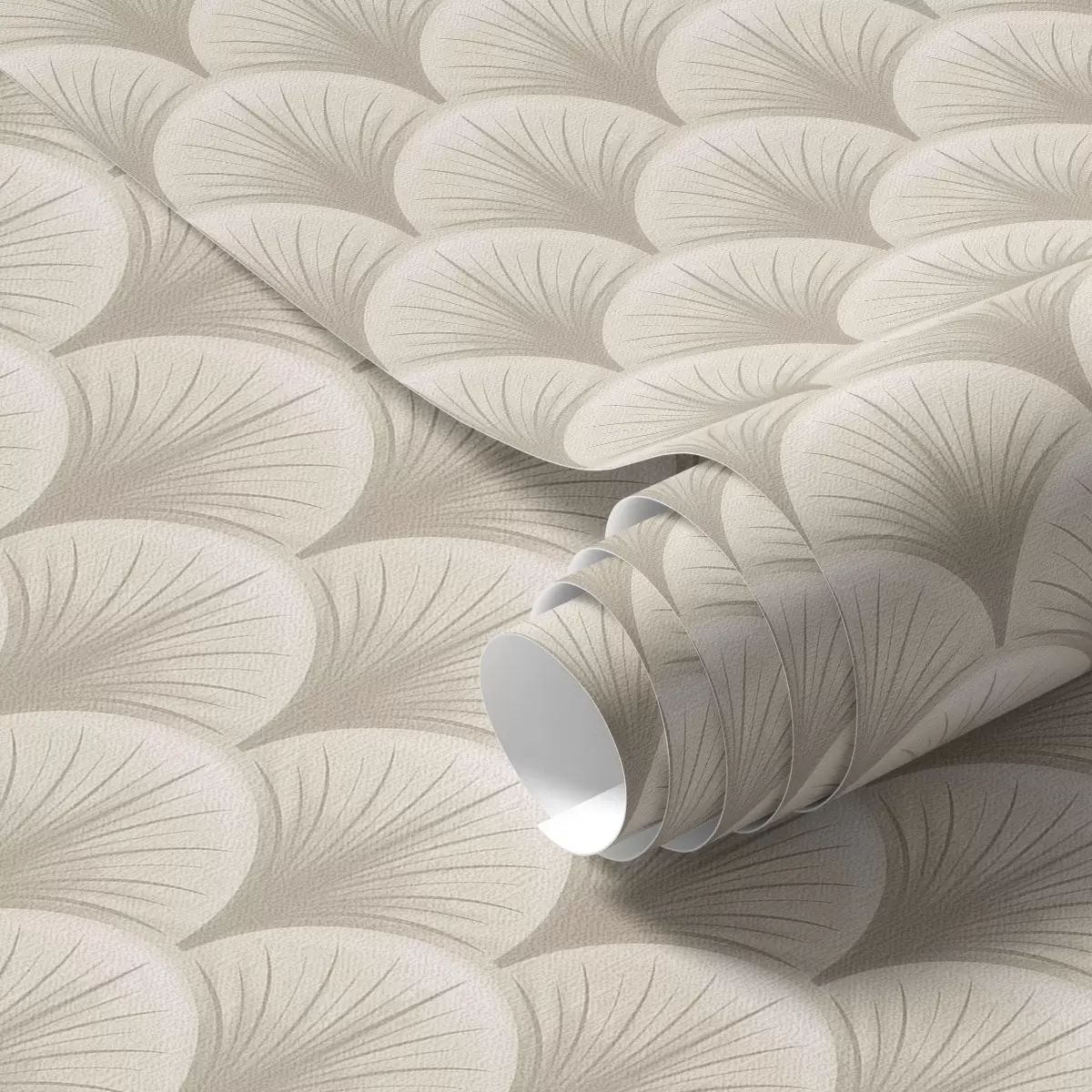 Papel pintado Arcos de abanico beige con rayos finos sobre un fondo claro. Nr. a00978