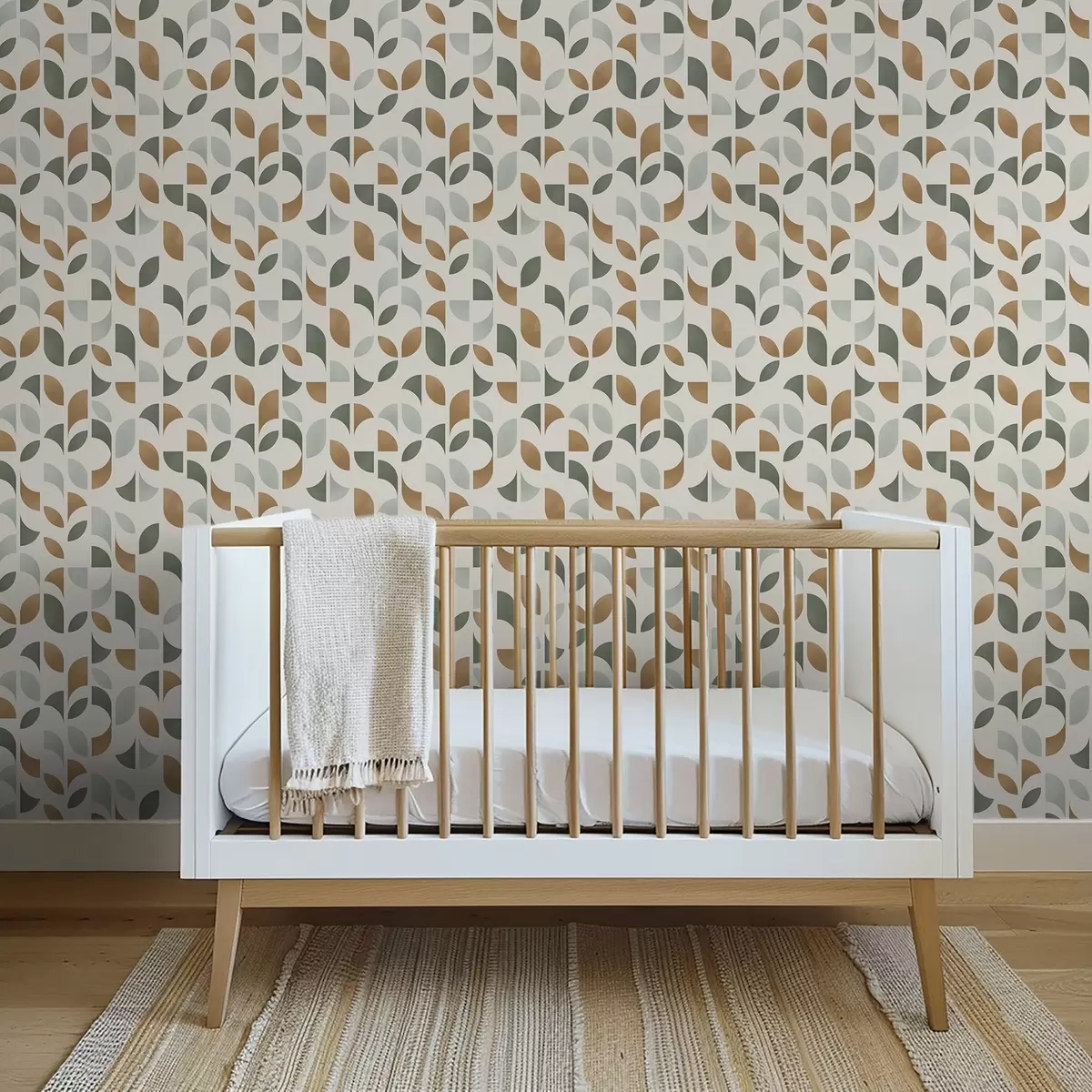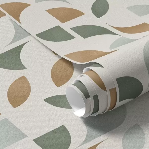 Papel pintado Columnas verticales de medias lunas y hojas, verde-terracota Nr. a00986