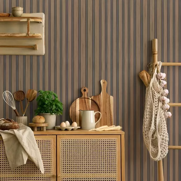 Papel pintado Lamas verticales de madera con inserciones gris oscuro a00991