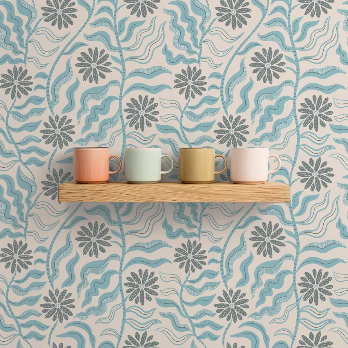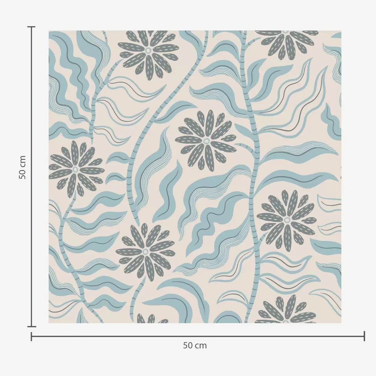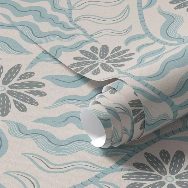Papel pintado Flores abstractas y hojas onduladas en suaves tonos azules Nr. a00998v1