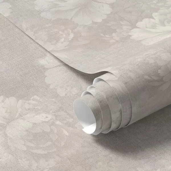 Papel pintado Peonías descoloridas sobre textura de lino en una suave paleta de colores beige Nr. a01018