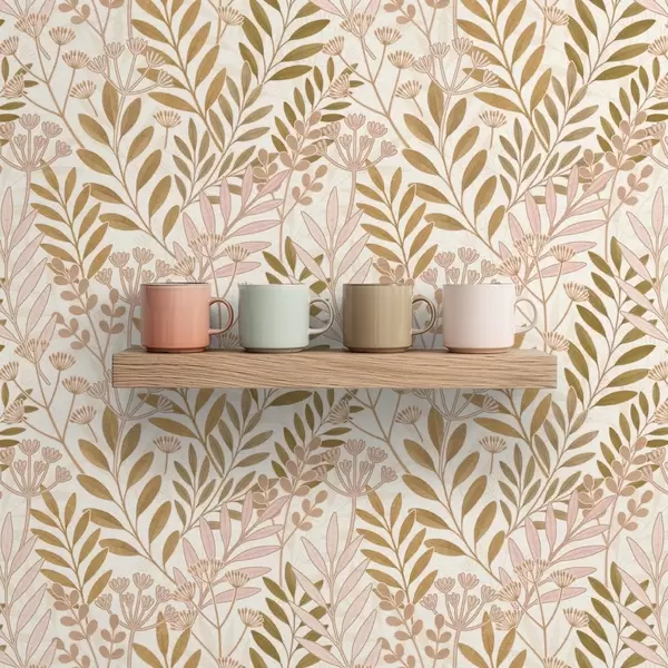 Papel pintado Diseño botánico ligero con delicadas hojas en tonos rosa y avena Nr. a01020v1