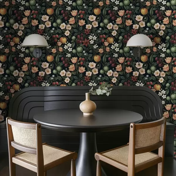 Papel pintado Jardín oscuro con flores, manzanas maduras y bayas Nr. a01034