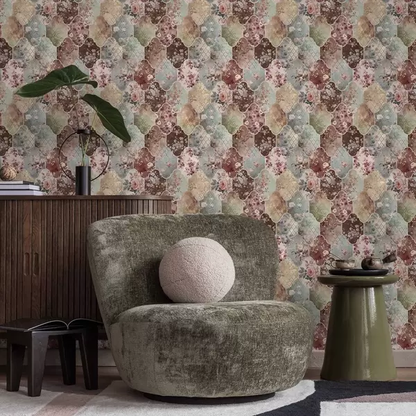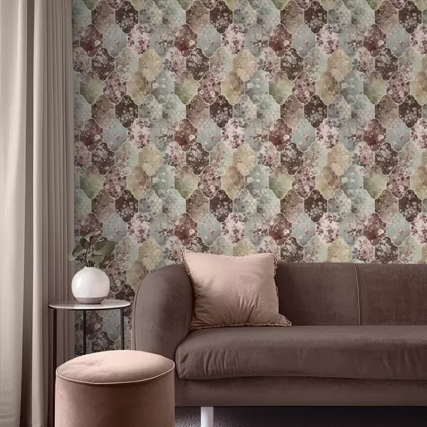 Papel pintado Mosaico de paneles florales y azulejos desgastados con motivos decorativos Nr. a01038