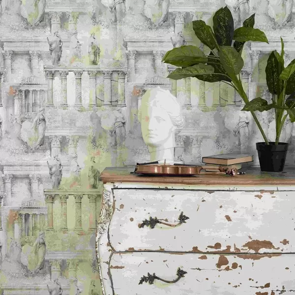 Papel pintado Estatuas y columnas antiguas en suaves tonos beige grisáceos Nr. a01041